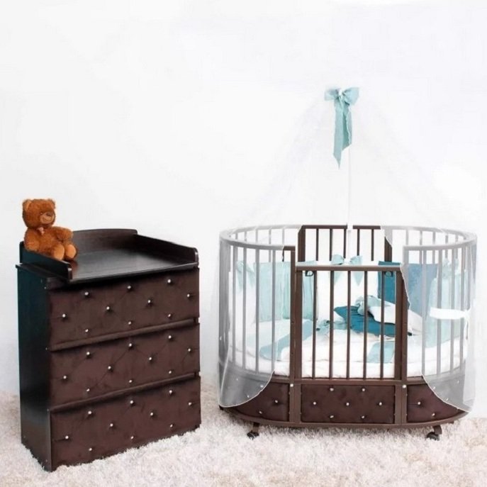 - Варианты использования: круглая кровать, овальная кровать, манеж, диван