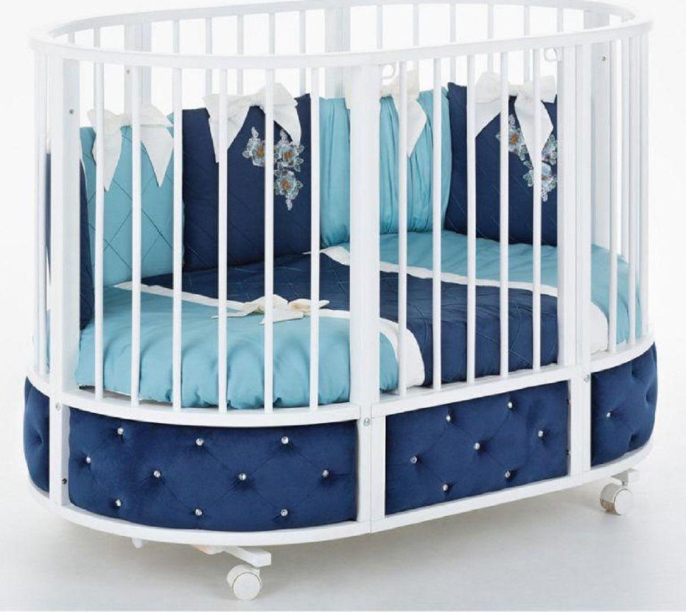 - овальная кроватка (ДхШхВ): 132х83х96 см, спальное место 125х75 см