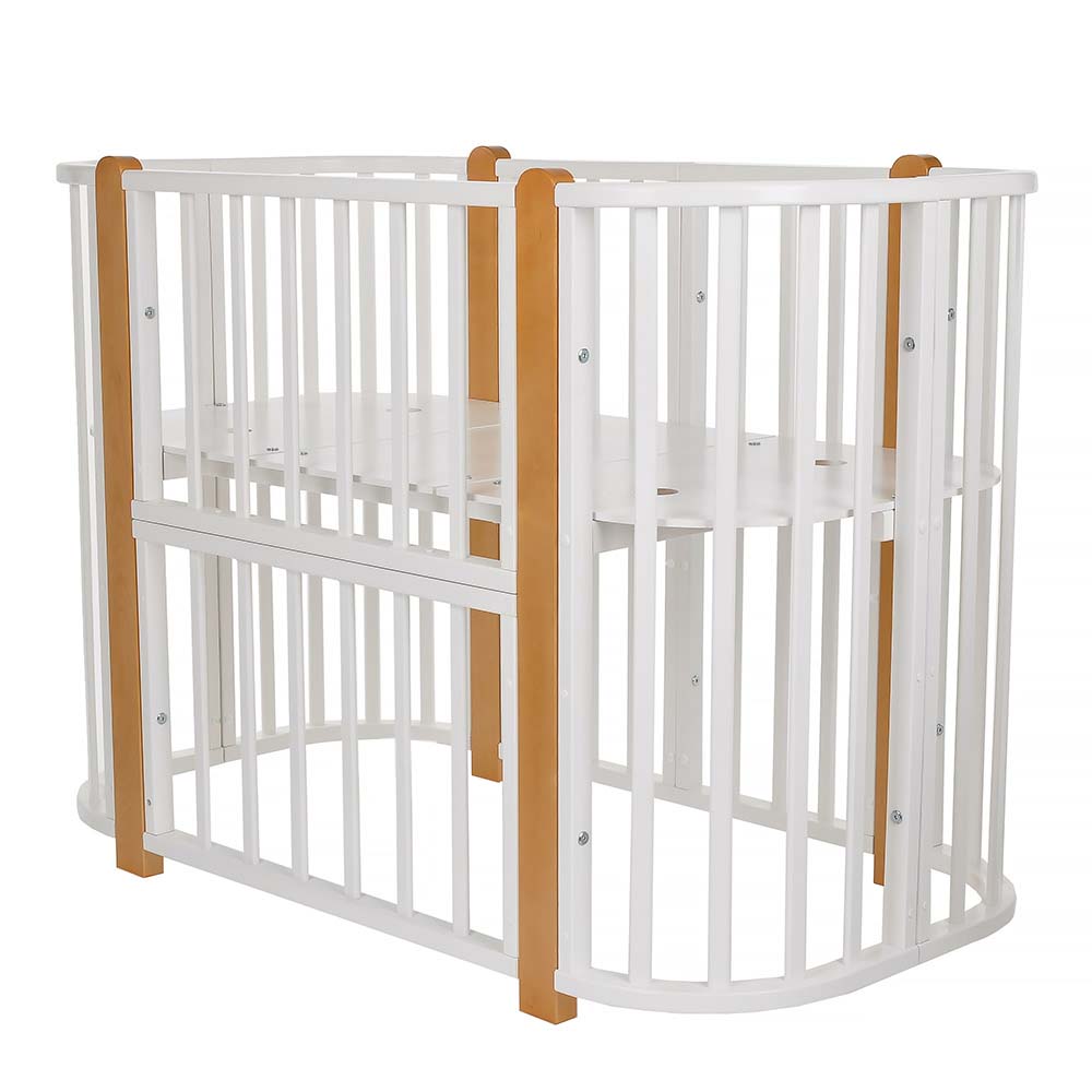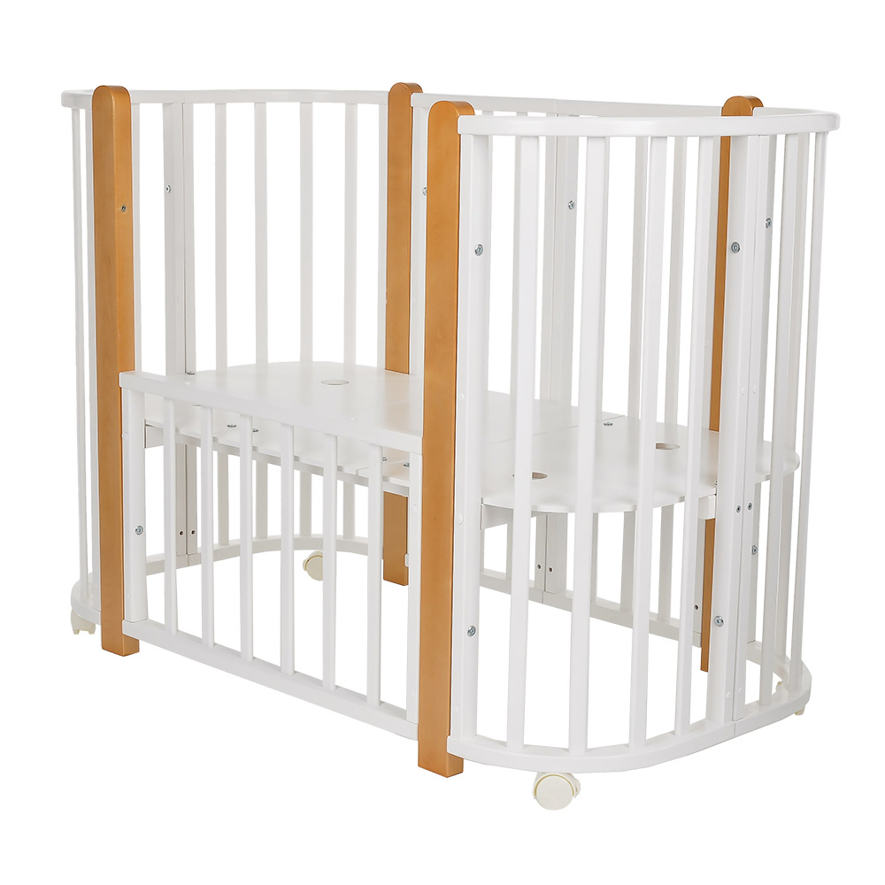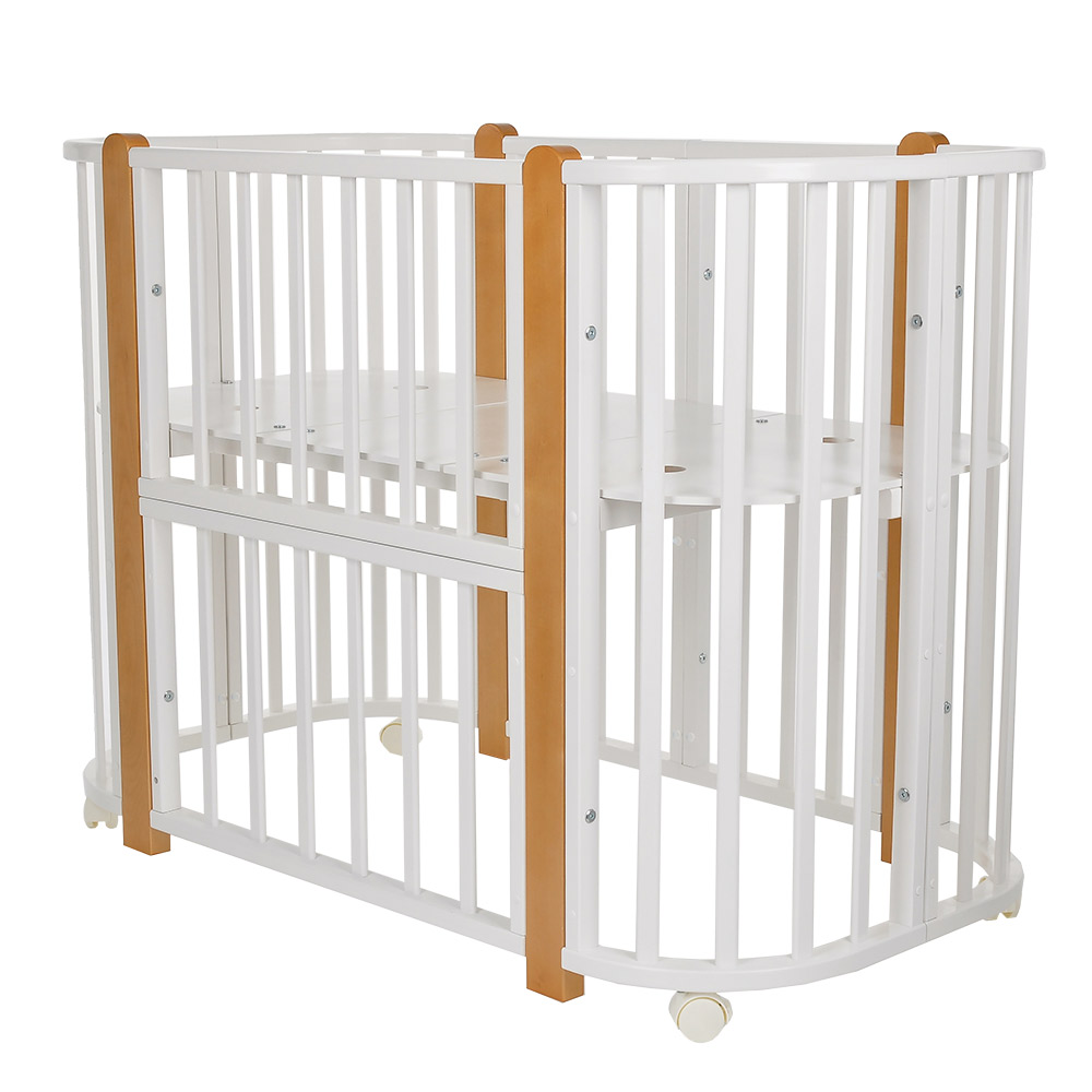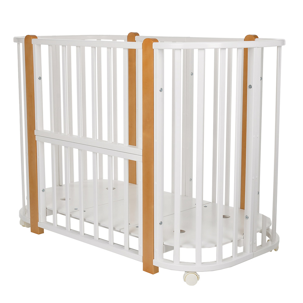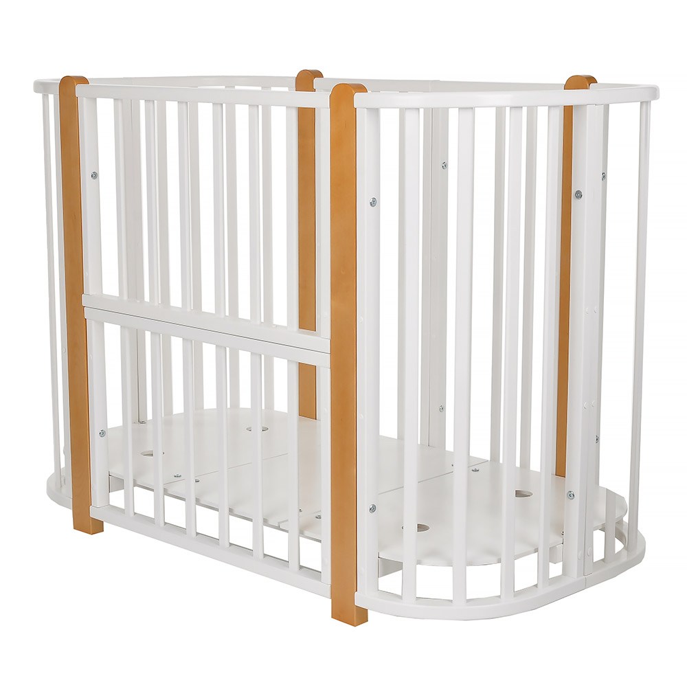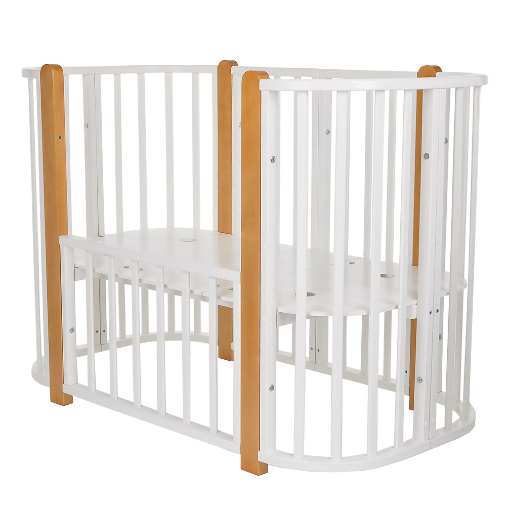 - 5 вариантов использования: колыбель 84*60 см, колыбель приставная 84*60 см, овальная кровать 120*60 см, манеж 120*60 см, диванчик 120*60 см.