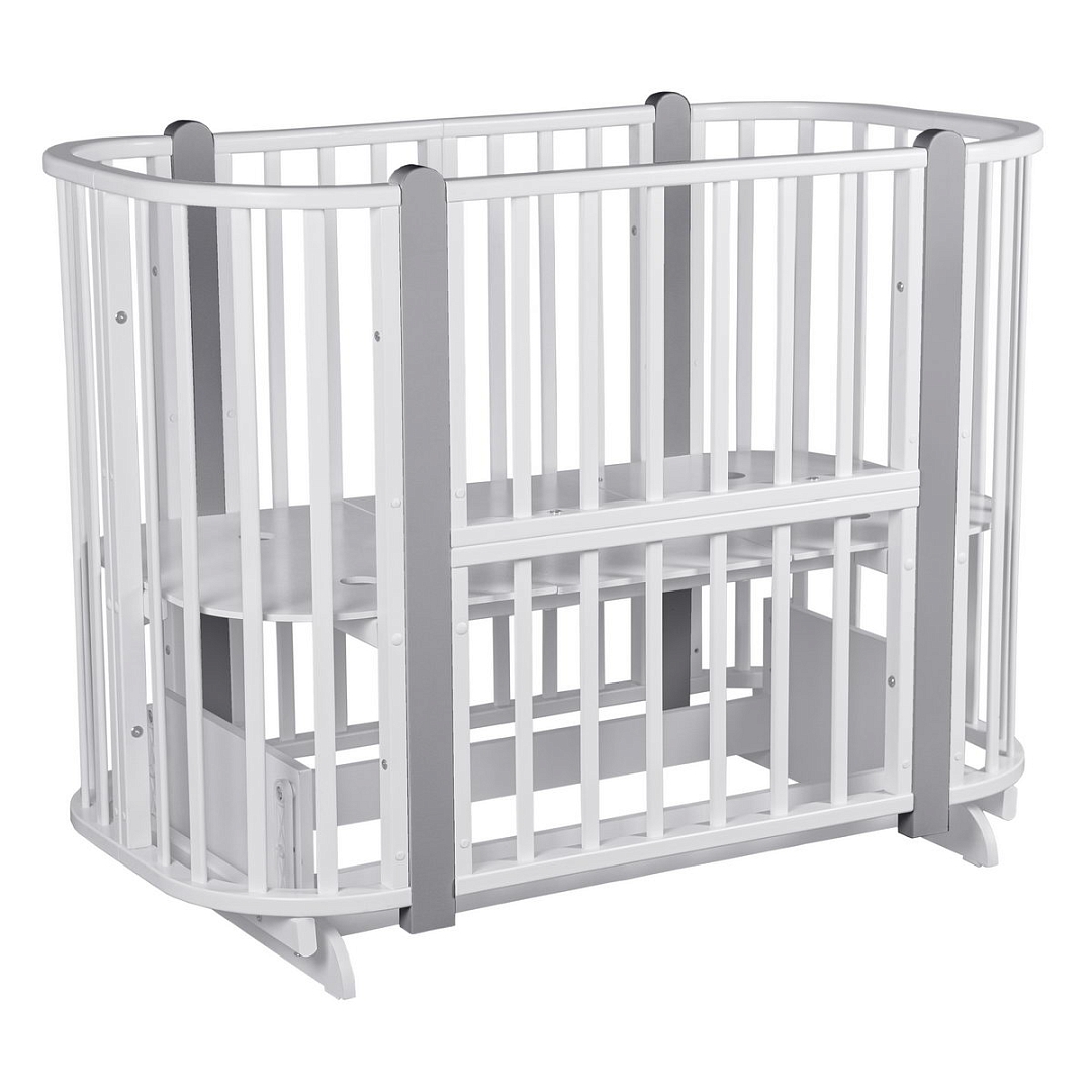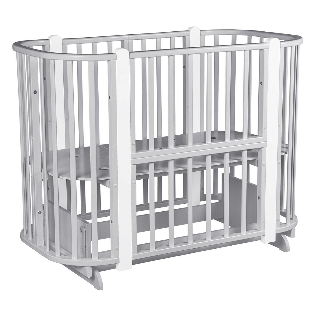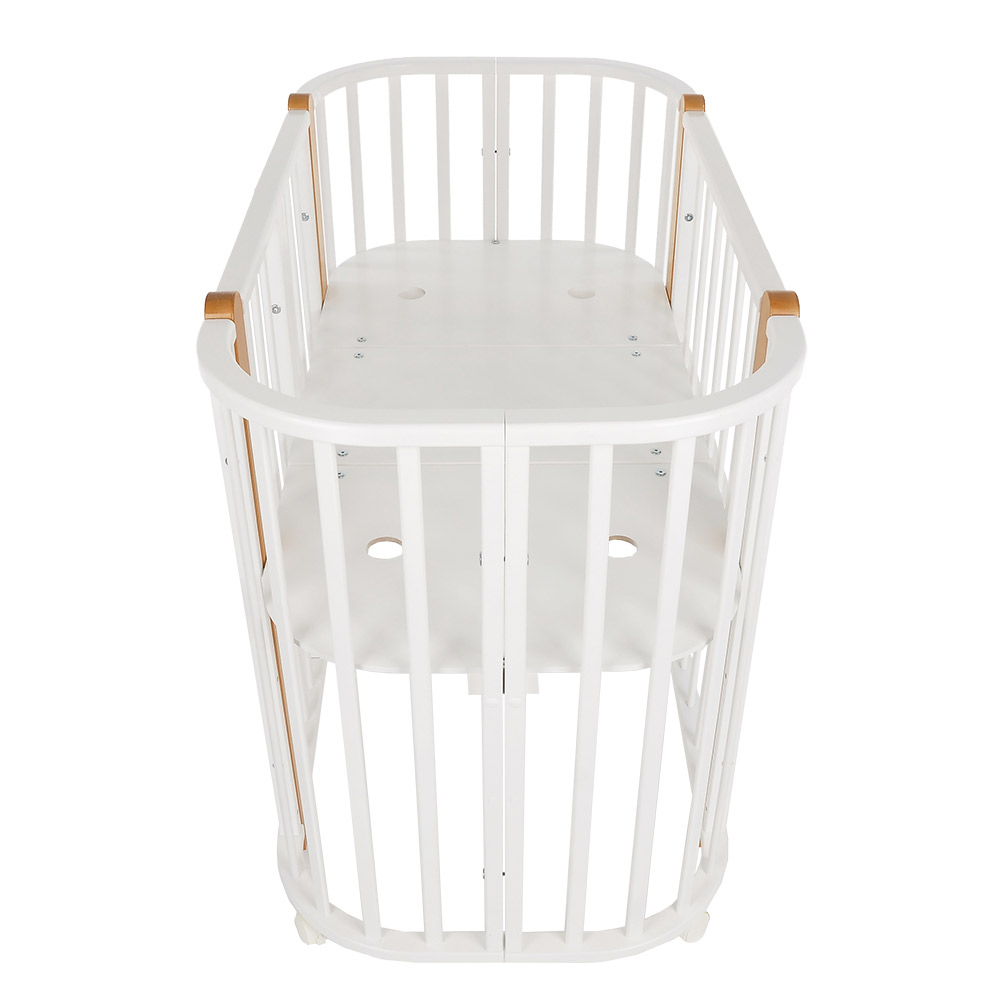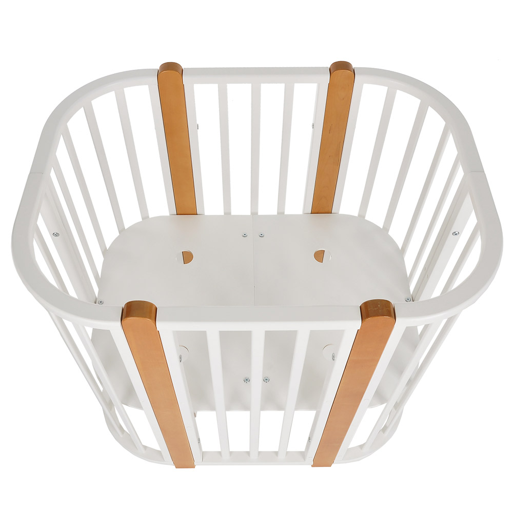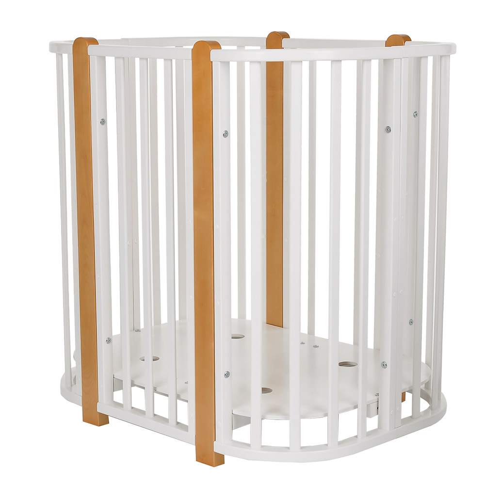 - 5 вариантов использования: колыбель 84*60 см, колыбель приставная 84*60 см, овальная кровать 120*60 см, манеж 120*60 см, диванчик 120*60 см.