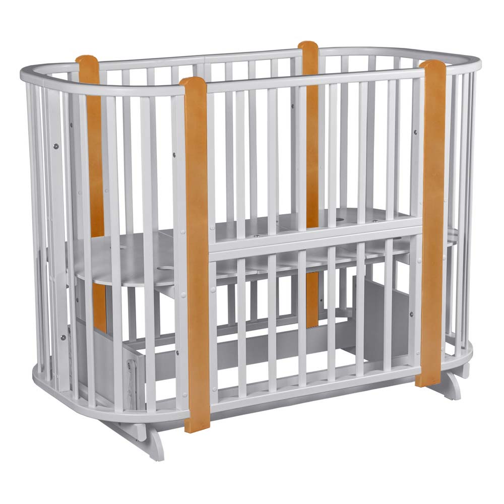 Кроватка выполнена из березы, что гарантирует ее надежность и экологичность. У кроватки нет острых углов, но большое спальное место, которое подарит ребенку комфорт во время сна. Ширина модели всего 68 см, что позволит при необходимости перевозить кроватку из комнаты в комнату за счет специальных колесиков.