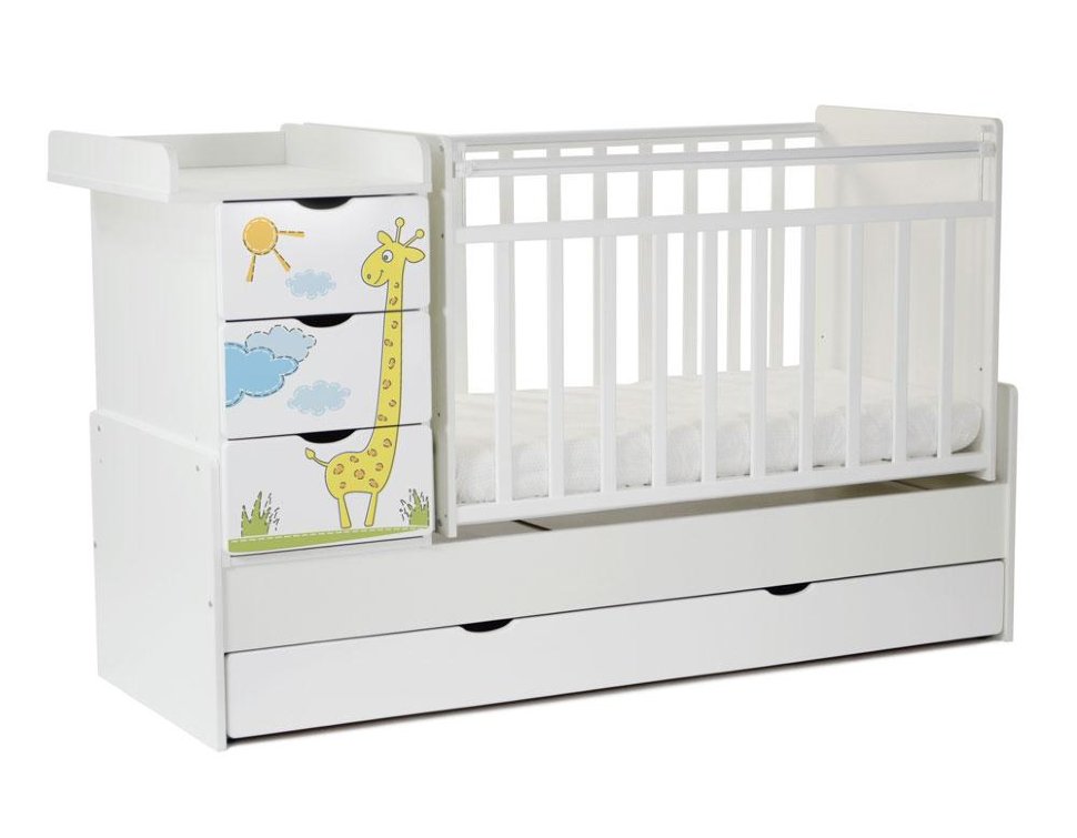 Кровать – трансформер СКВ-5 Жираф фотопечать - невероятное сочетание цены, качества и количества мебели. Украшает кровать фасад с фотопечать милого Жирафа, с которым обязательно подружится Ваш малыш