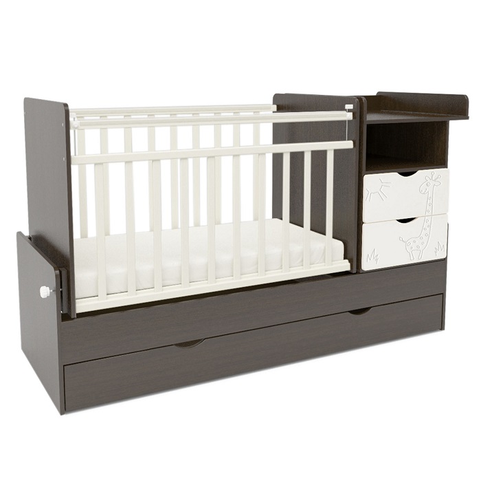 Два фасада ящиков комода из МДФ с забавной фрезеровкой в виде жирафа. Пеленальный стол с ограждениями стал гораздо удобнее, за счёт увеличения размера столешницы.