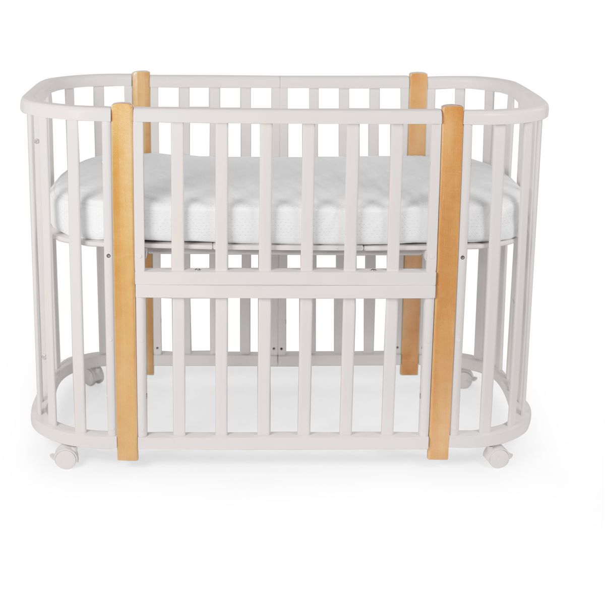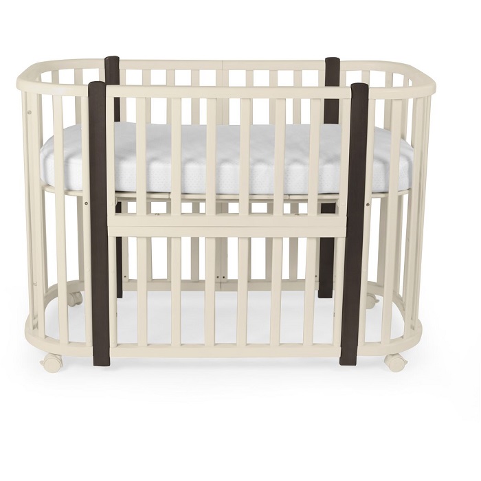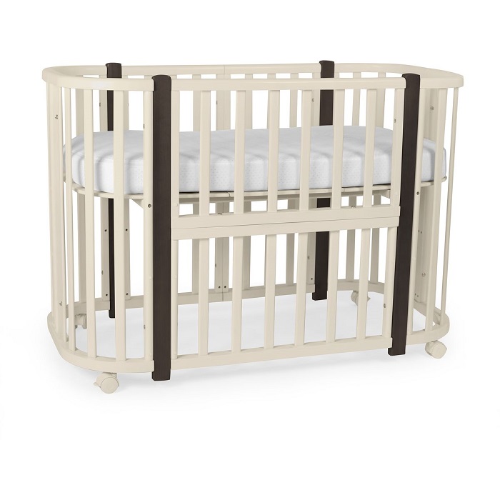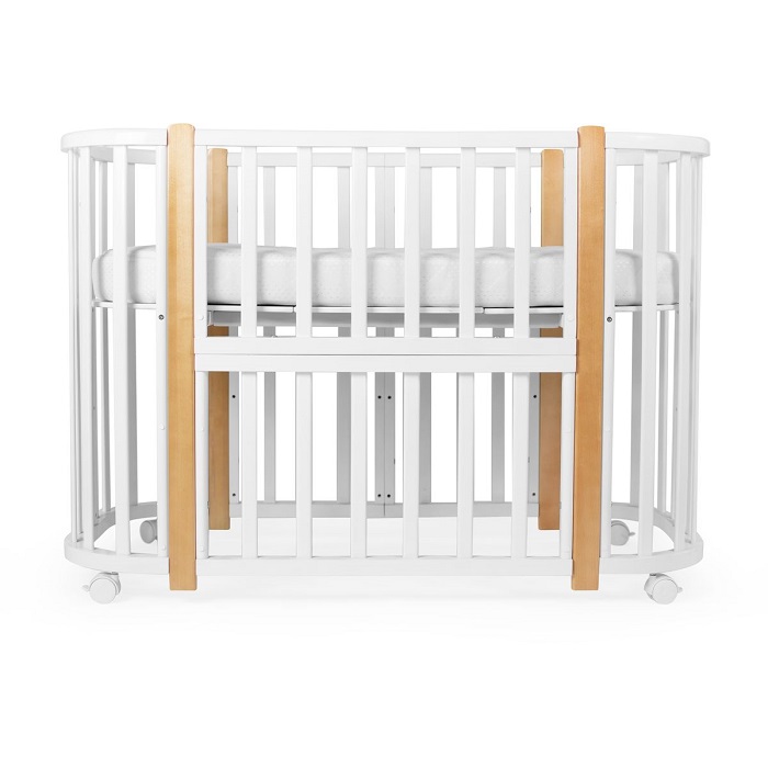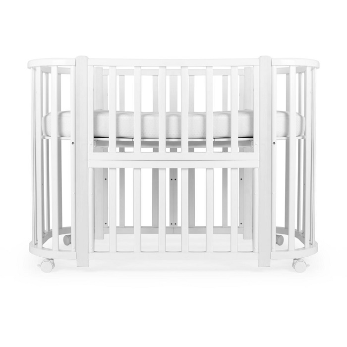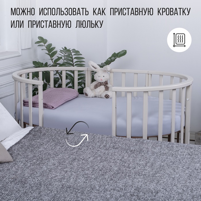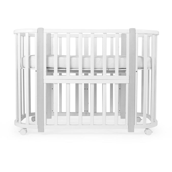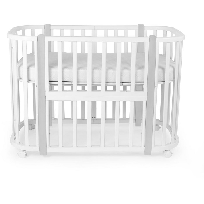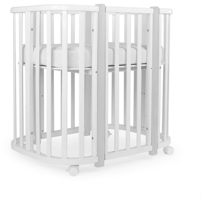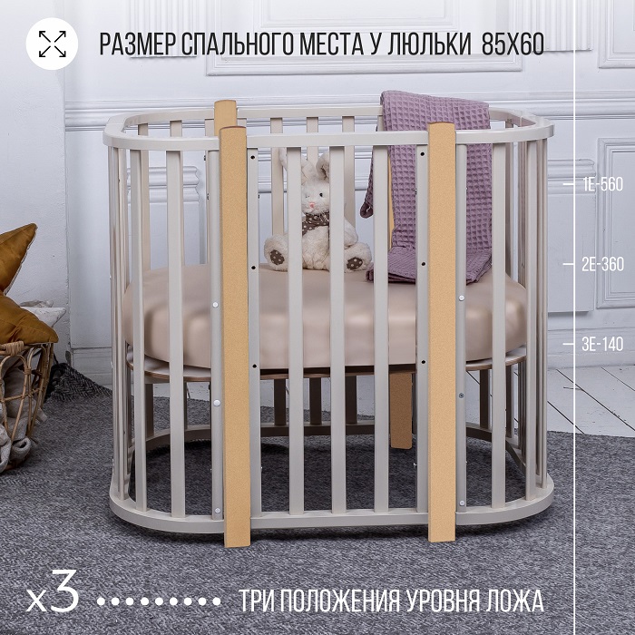 - Трансформации: 1) Колыбель, см: 85*60 2) Приставная кроватка-колыбель, см: 85*60 3) Прямоугольная кроватка, см: 120*60 4) Манеж, см: 120*60 5) Приставная кроватка-диванчик, см: 120*60 Материал: МДФ , массив березы .