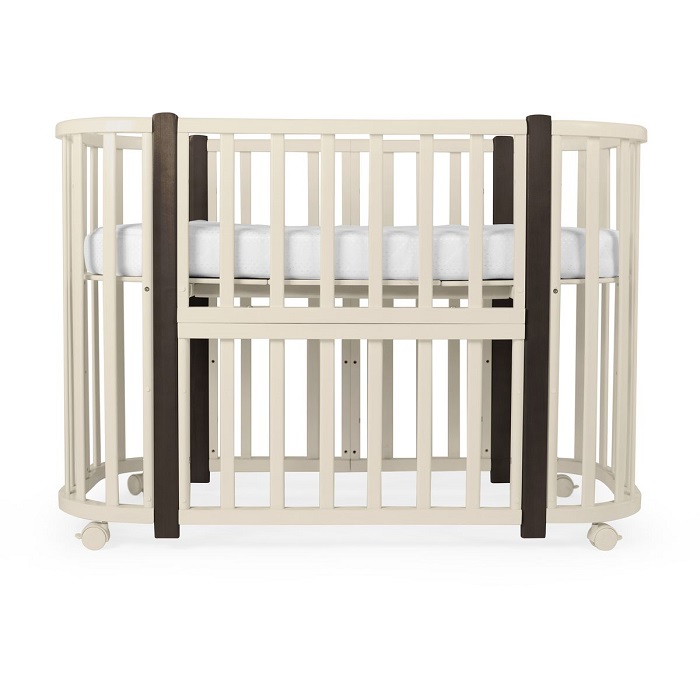 Кровать - трансформер Sweet Baby Palermo 5 в 1 (Свит беби Палермо) - красивая и функциональная кроватка из березы для ребенка с 0-3 лет. Эта модель воплощения стиля, удобства и качества. Она не только сделает пребывание ребенка в кровати максимальным комфортным, но и украсит любую комнату. Модель имеет плавные линии, компактные размеры и интересные цветовые решения, которые подчеркивают элегантность кровати. Кровать - трансформер это возможность менять кровать по мере роста ребенка и необходимым функциям. Так, например, для ребенка с 0-4 месяцев (примерно) будет очень удобна круглая кровать - колыбель. Она создаст уют и ощущение безопасности для новорожденного. Когда ребенок подрастет кровать можно увеличить до стандартных размеров спального места 120х60 см. Кровать можно использовать как приставную кровать, а для ребенка от 2 лет как диван. Если полностью опустить спальное ложе по высоте, то модель можно использовать как манеж. Кроватное основание с отверстиями создает оптимальные условия для вентиляции матраса и комфортные условия для сна.