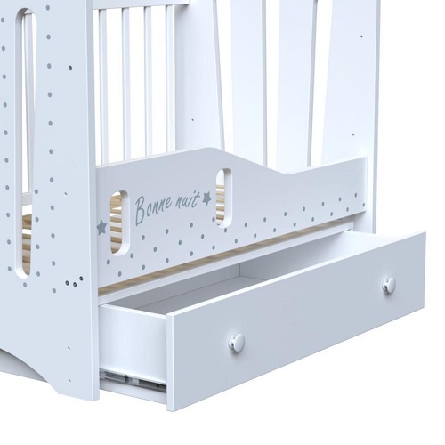 - Ящик под ложем кроватки на шариковых направляющих.