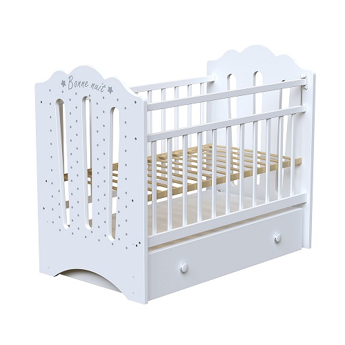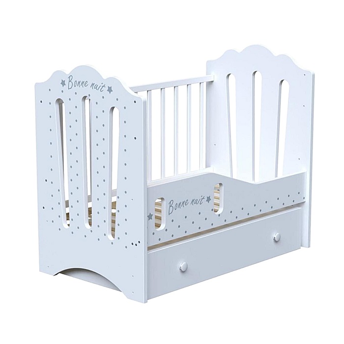 Кровать ВДК BONNE (маятник, ящик) - красивая, элегантная кроватка для ребенка с рождения до 3 лет. Модель выполнена из березы и ЛДСП. Отличительной особенностью кроватки является дополнительный бортик. Когда малыш подрастет то кроватку можно превратить в диванчик, а для защиты ребенка установить специальный бортик. Он маленький и очень удобный, и поможет ребенку самостоятельно залазить и вылазить из кроватки, а родители не будут переживать, что малыш упадет из кроватки.