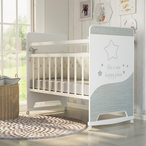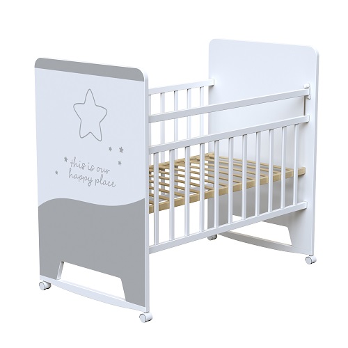 Изящная кроватка в минималистичном оформлении прекрасно подойдет для популярных на сегодняшних день интерьеров. При этом понравится любому малышу своим милым принтом! Модель оснащена полозьями для качания и колесной базой, которые можно менять друг с другом при необходимости. Выполнена из экологически чистых безопасных для малышей материалов - массива березы и ЛДСП. Также, на кроватке откидывается планка, которая позволяет с комфортом помещать в нее даже спящего малыша.