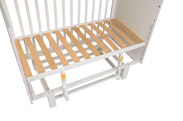 - Кровать оснащена легко опускающейся и быстросъемной боковиной (автостенка), которая облегчает доступ к малышу: не придется низко наклоняться, чтобы уложить или достать кроху из кроватки.