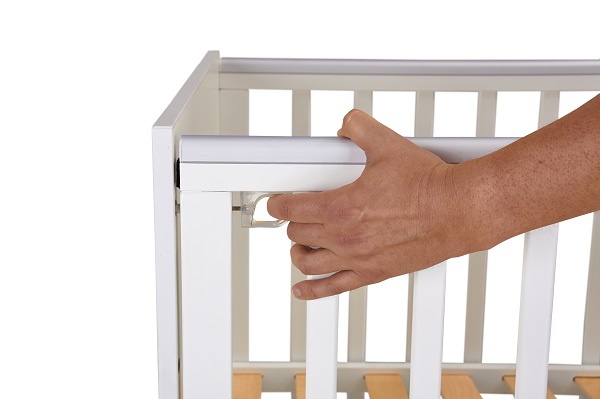 - Благодаря быстросъемной передней боковине кроватка может быть использована в качестве приставной к родительской кровати, что позволяет малышу быть ближе к маме, облегчая процесс ухода и кормления в течение ночи. Данная модификация очень удобна в первые месяцы жизни малыша, так как помогает скоординировать периоды сна и бодрствования, а также устанавливает связь между родителями и новорожденным.