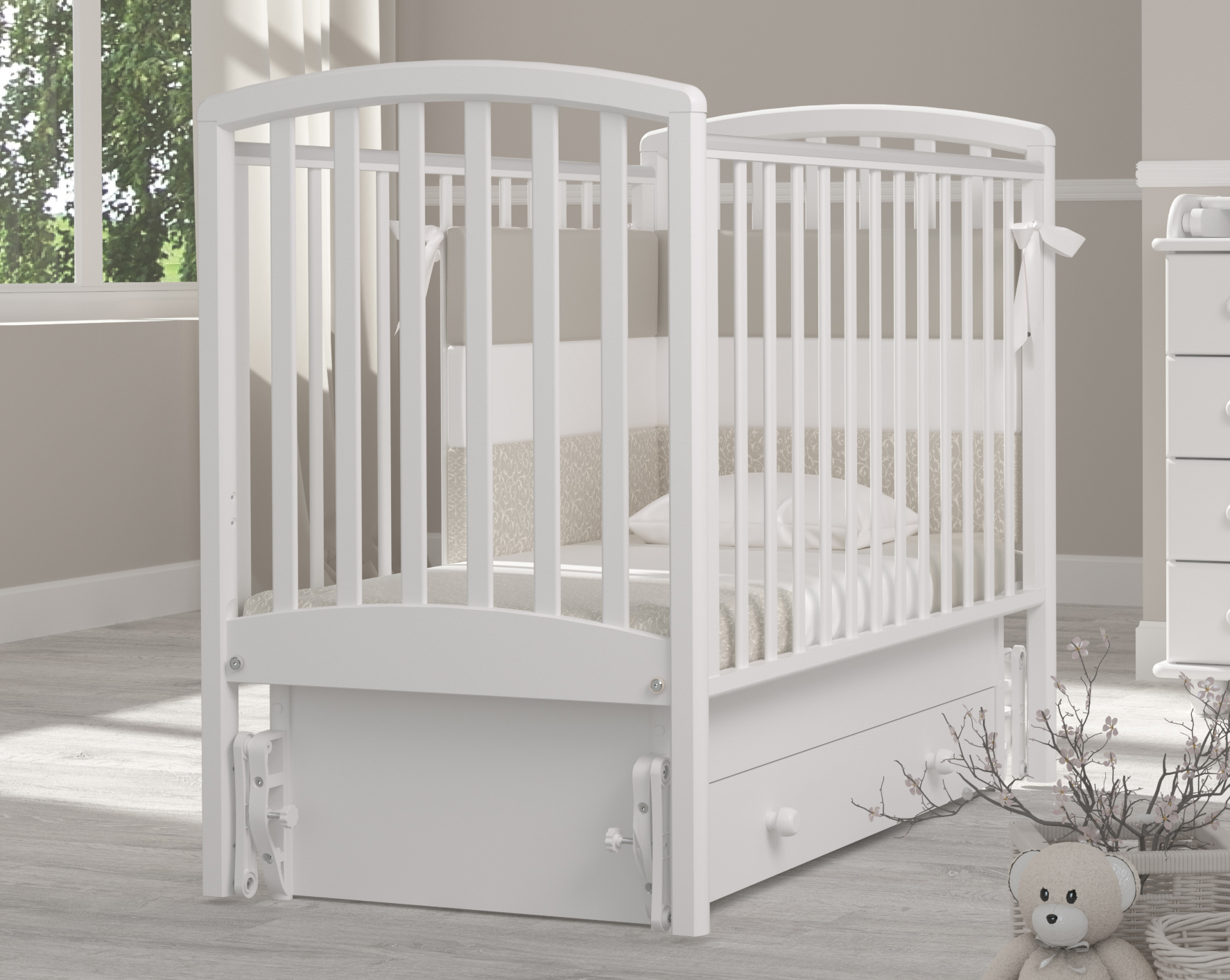 Кровать Гандылян Дашенька с маятником – классические утонченные формы этой кроватки делают ее невероятно стильной и уютной, что не только добавляет комфорта детскому сну, но и благотворно влияет на его эстетическое воспитание. Маятниковый механизм поможет маме успокоить и настроить на сон маленького ребенка. Кроме того, укачивание помогает созреть и окрепнуть нервной системе малыша. А, что бы родители не ломали голову, какой маятник лучше, кроватка оснащена универсальным маятником. Вы можете сначала собрать кроватку с продольным маятником, а если малышу не понравится, то с поперечным.