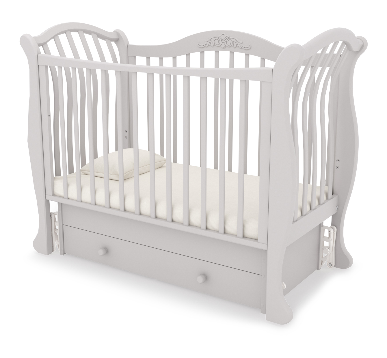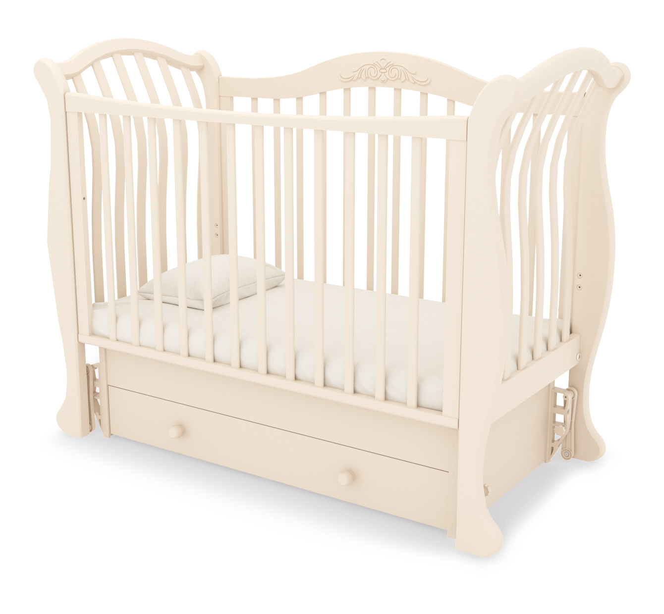 - Для удобства мамы предусмотрено 2 положения матраса по высоте и опускающаяся боковина.
