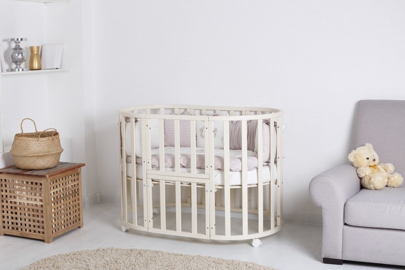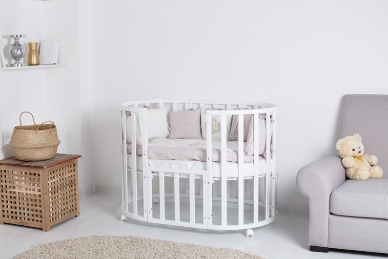 Овальная кроватка для детей от 6 месяцев до 3-4 лет обеспечит ребенку полноценный сон и высокую безопасность.