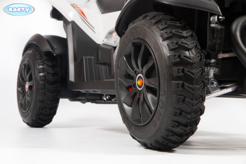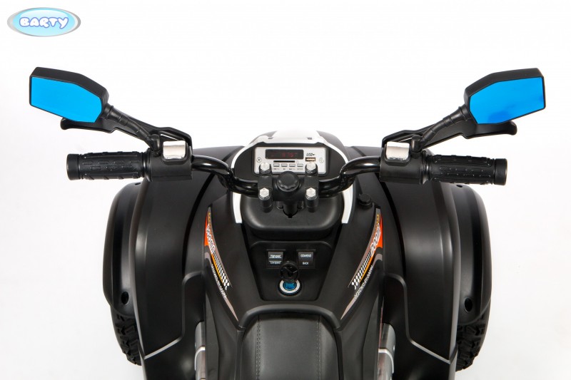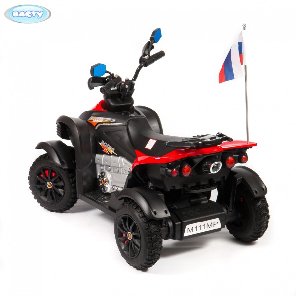 Квадроцикл BARTY CROSS M111MP (DMD-268А) (барти кросс) - детский транспорт для ребенка от 3 лет, который отличается комфортабельностью и максимальной устойчивостью. Такой транспорт предназначен для катания одного ребенка, имеет понятное и простой управление и очень удобен в эксплуатации. Колеса транспорта выполнены из износостойкой резины EVA и оснащены амортизационной системой. Для удобства управления транспортом машина оснащены удобным мягким сидением и прорезиненными вставками на руле управления, а для ног предусмотрена специальная подножка. У модели 2 мощных 55 Ватт мотора, которые позволяют разогнаться транспорту до 7 км/час. Предусмотрено несколько режимов для поездки вперед и одна скорость назад. Для более увлекательной поездки предусмотрено свето-звуковое сопровождение, и порт USB для прослушивания любимой музыки в пути. Емкостный аккумулятор позволяет продуктивно кататься на электроквадроцикле на протяжении 120 минут. На панели приборов есть индикатор заряда батареи.