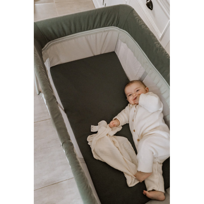 Все ткани сертифицированы по стандарту Oeko-Tex 100. Большая сумка для переноски с удобными ремнями позволяет легко хранить и транспортировать кроватку-манеж.