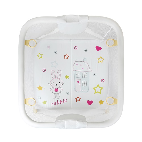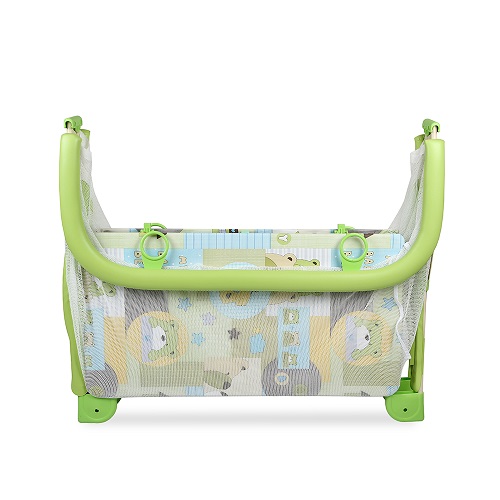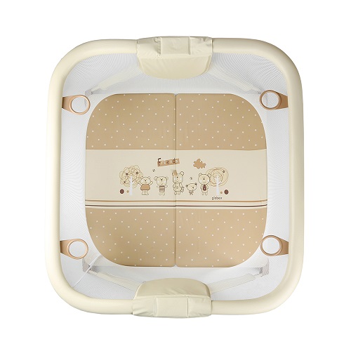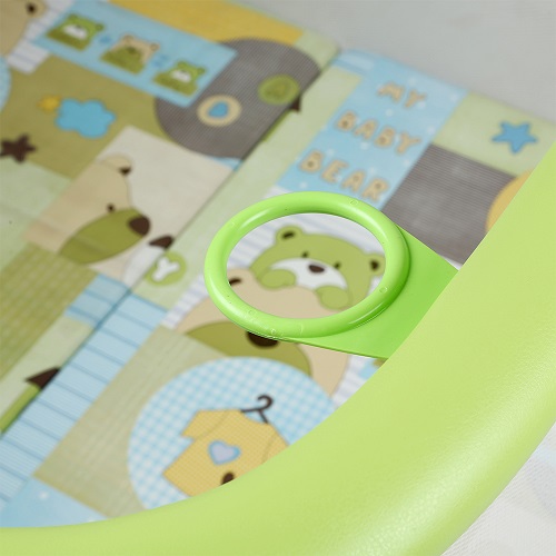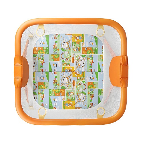 По бокам на стенках для этой же цели предусмотрены довольно большие мягкие накладки, которые, как дно и верх манежа обшиты нескользкой клеенкой. Это облегчает ежедневную влажную уборку и позволяет укладывать малыша в манеж без памперсов. Предусмотрены круглые пластиковые кольца-поручни, которые помогут ребенку научиться вставать на ножки. На них же можно крепить погремушки и разные развивающие девайсы.