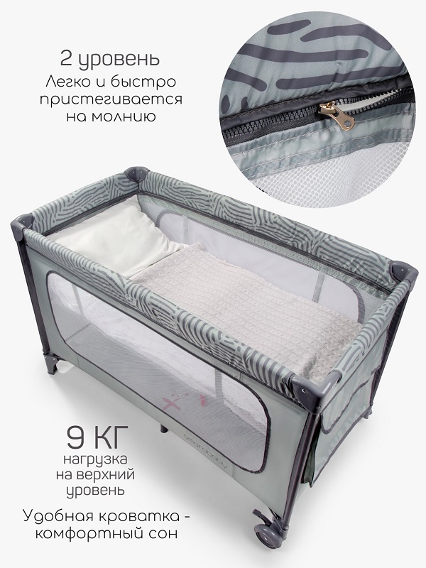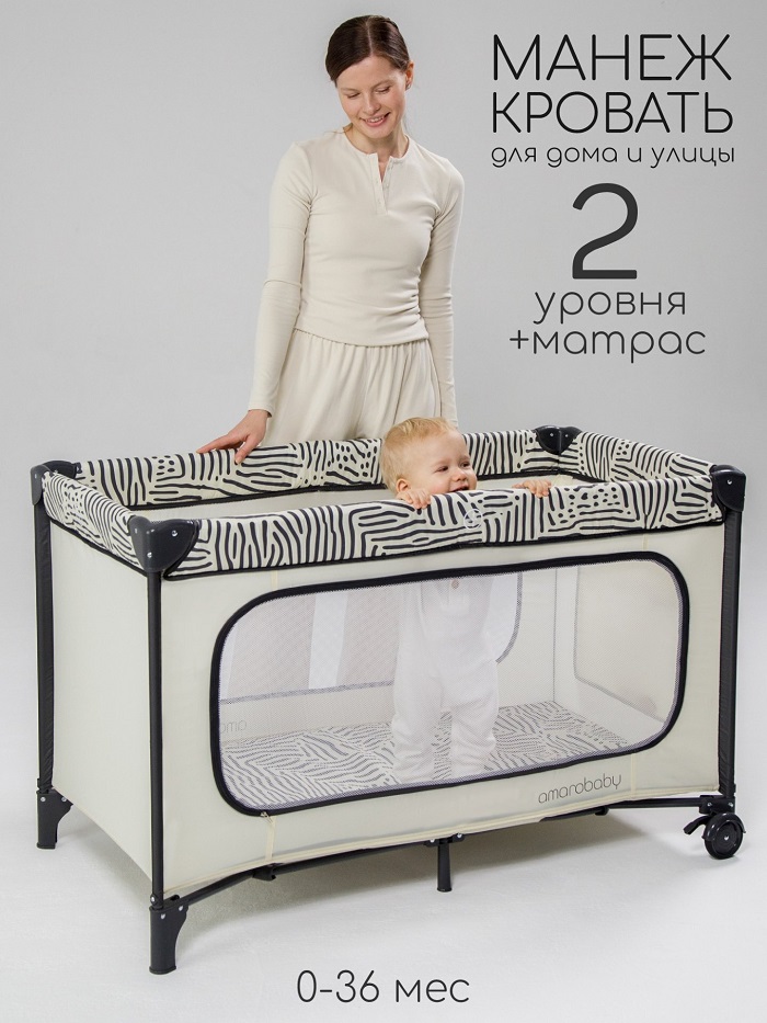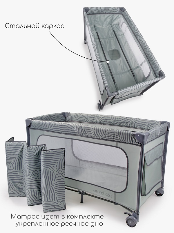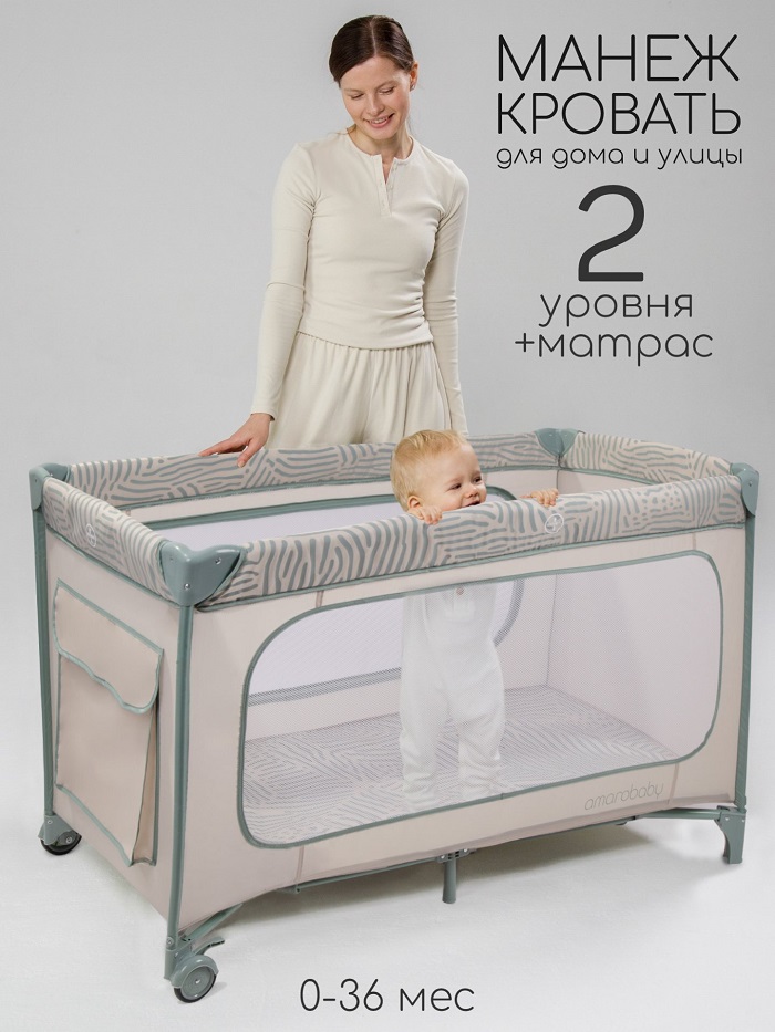 Манеж-кровать Amarobaby SMART (Амаробеби смарт) - удобная двухуровневая кровать -манеж для ребенка с рождения до 3 лет. Отличный вариант легкой, компактной кровати для дома, путешествий, гостей и поездок на дачу. Кроватка отличается небольшим весом, очень компактным сложением и полноценным спальным местом 120х60 см.