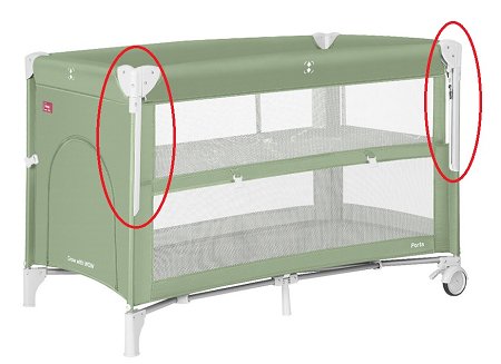 Кроватка оснащена колеса со стопорами, то позволит без труда перемещать кровать по комнате. Специальные опоры предотвращают опрокидывание кроватки. Все углы закрыты пластиковыми накладками для удобства и безопасности малыша. Простое и компактное сложение позволяет брать кроватку с собой в поездки.