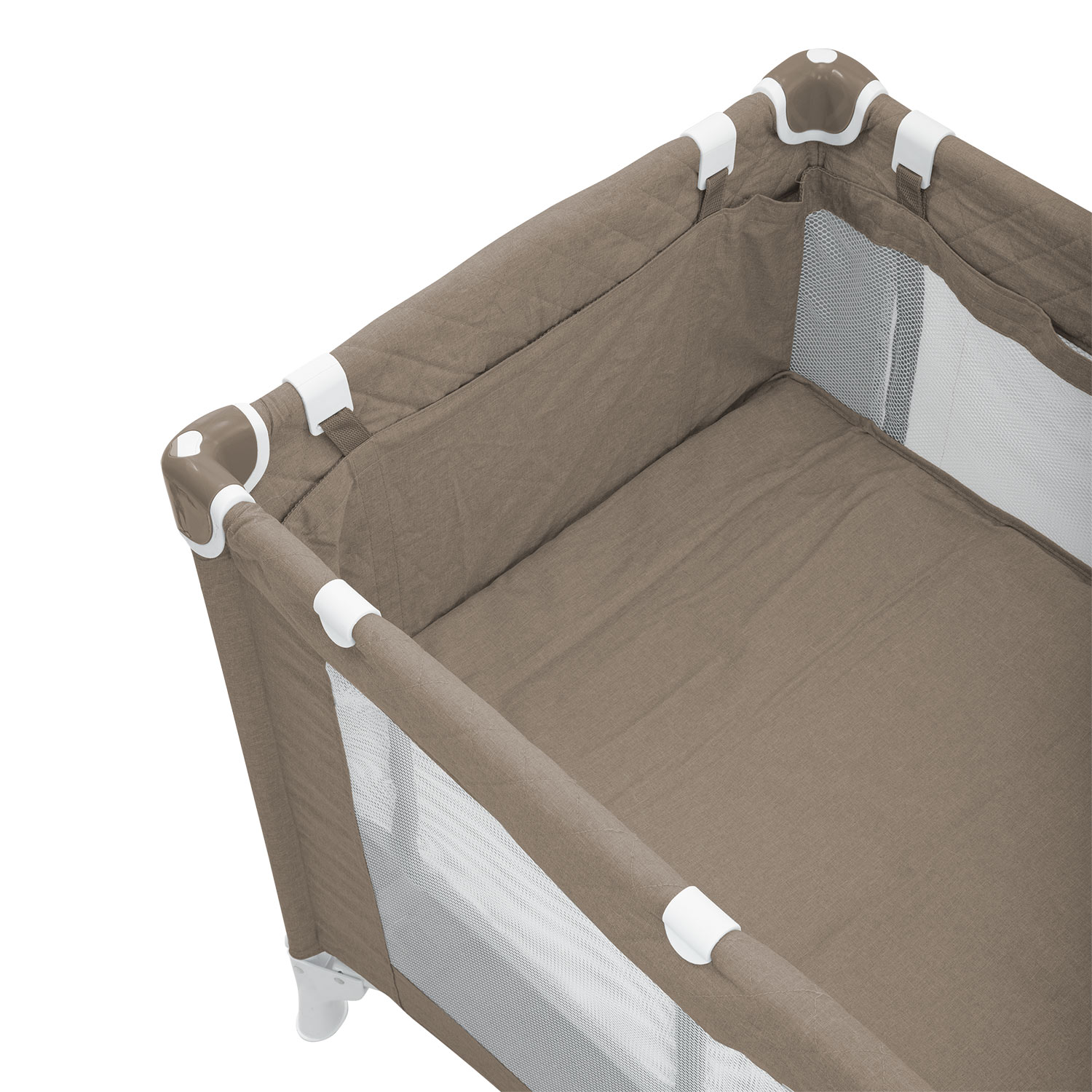 - сетчатые стенки позволяют присматривать за малышом, а когда кроха подрастет он сможет самостоятельно выбираться из манежа благодаря боковому лазу на молнии;