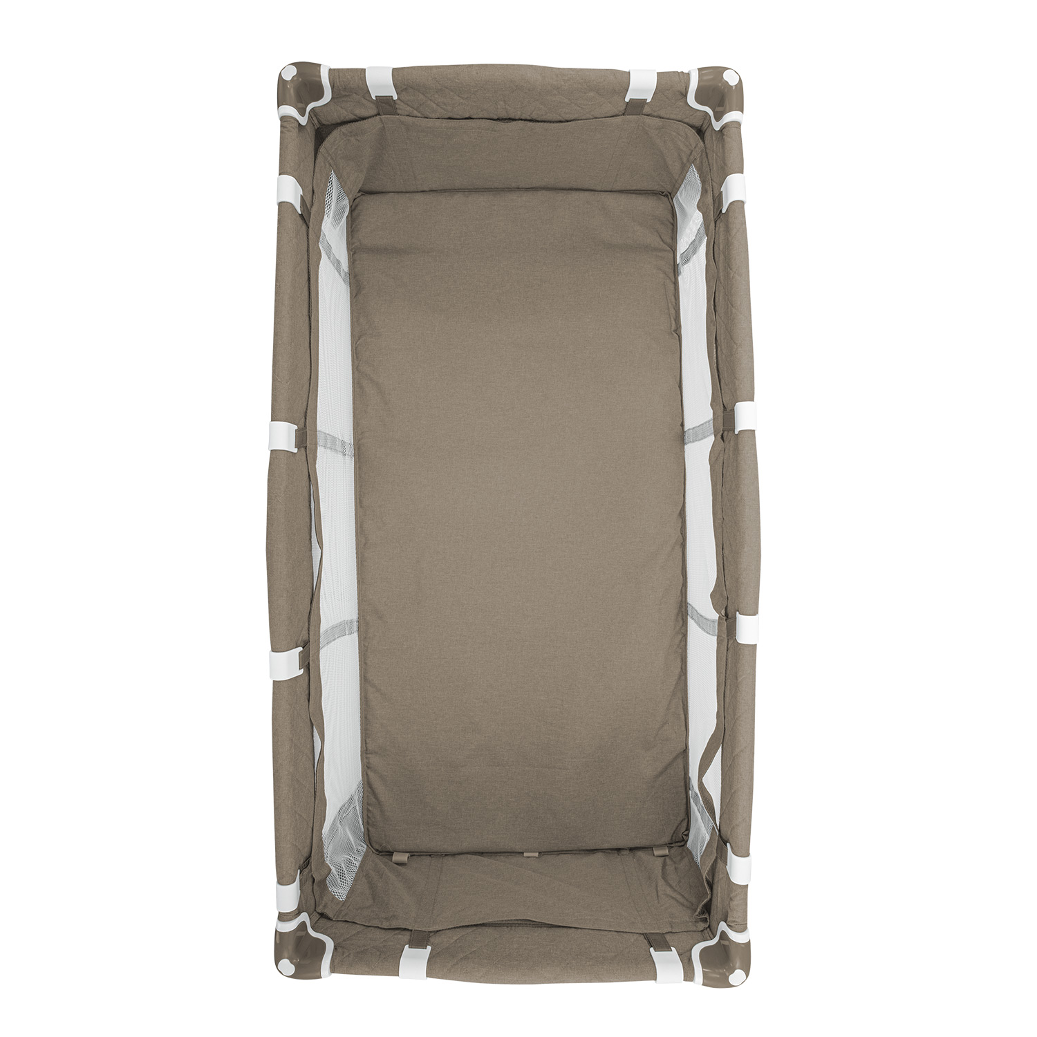 Так же модель можно использовать как манеж - удобное место для безопасных игр ребенка. Сетчатые стенки позволяют присматривать за малышом, а так же улучшают вентиляцию в манеже. Когда кроха подрастет он сможет самостоятельно выбираться из манежа, благодаря боковому лазу на молнии. Так же в комплекте с манежем идет москитная сетка, для спокойных игр и сна на свежем воздухе, и съемные кольца, которые помогут ребенку научиться вставать на ножки.