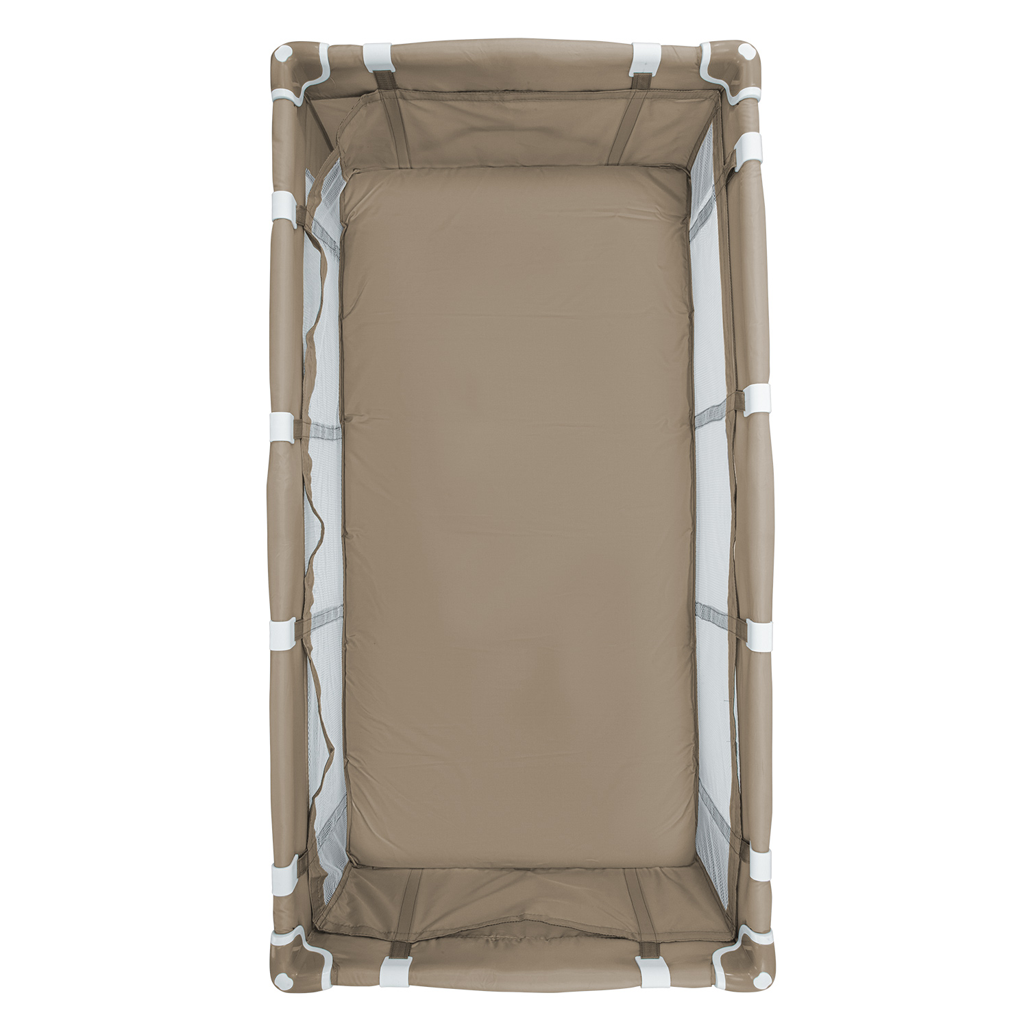 - сетчатые стенки позволяют присматривать за малышом, а когда кроха подрастет он сможет самостоятельно выбираться из манежа благодаря боковому лазу на молнии;