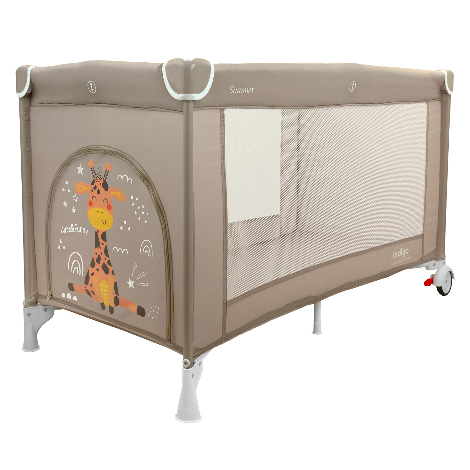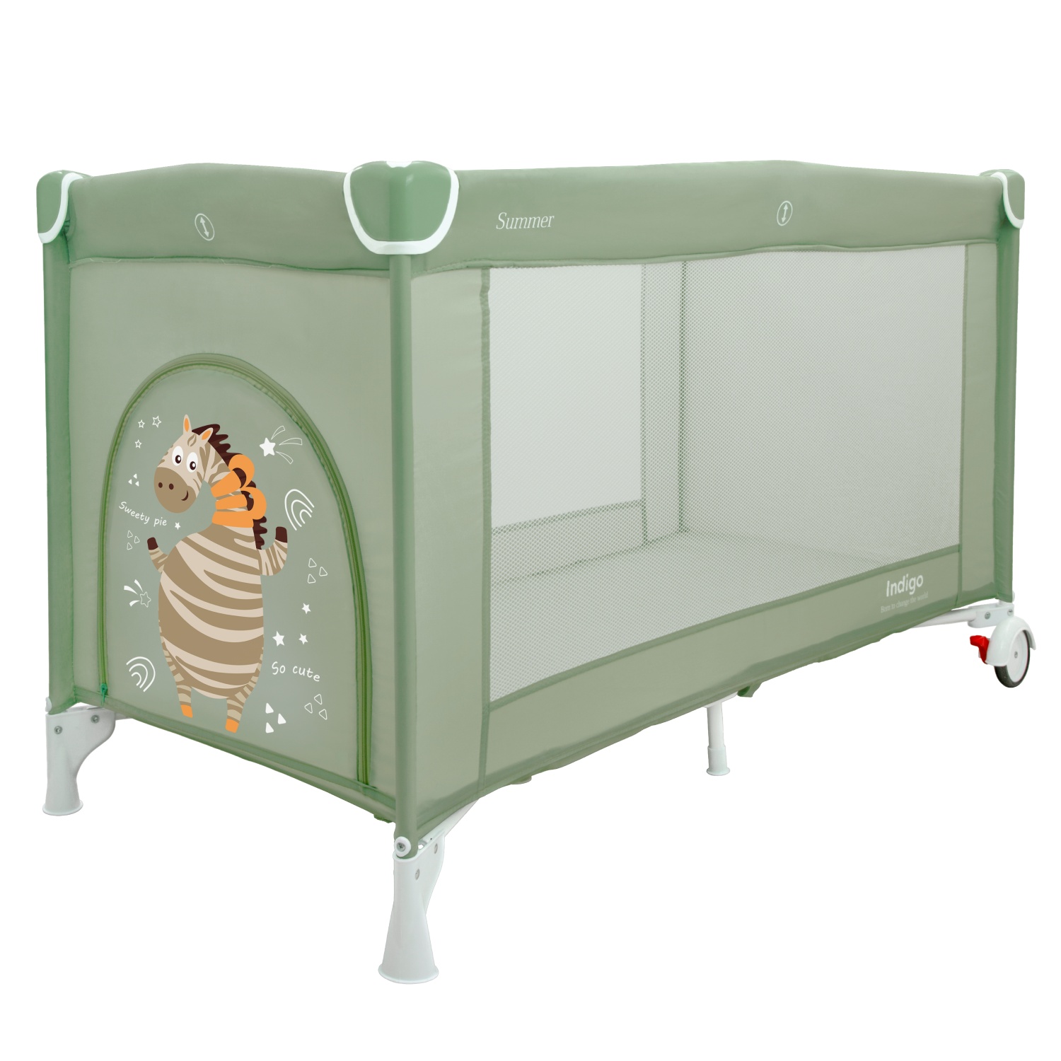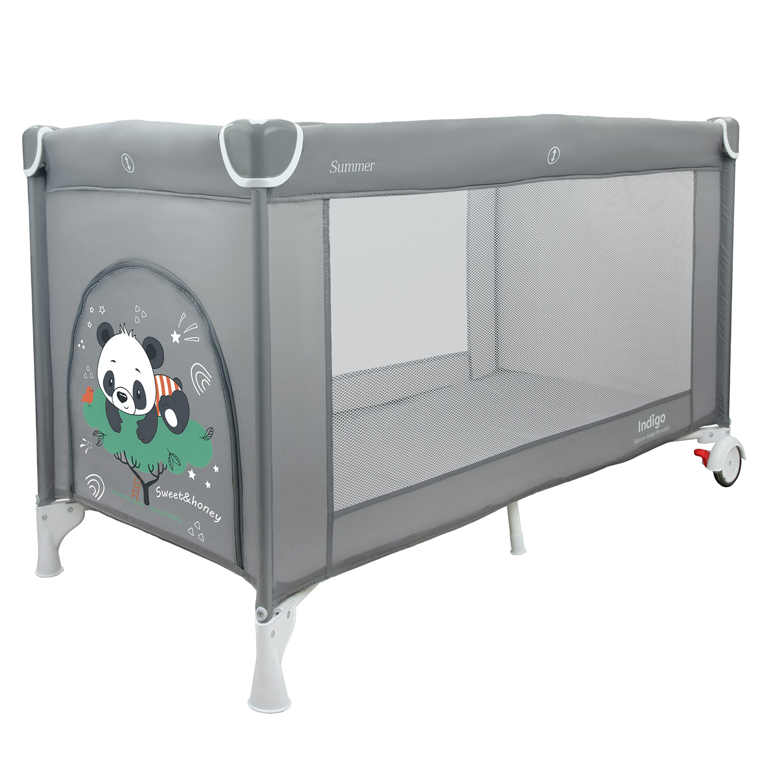 Манеж-кровать Indigo SUMMER (Индиго Саммер) - максимальный комфорт для вашего крохи. Это удобная складная кроватка для полноценного сна ребенка до 3 лет (до 20 кг), а так же безопасное пространство для самостоятельных игр. Преимущество модели в том, что она очень быстро раскладывается и складывается, занимает мало места и удобно перемещается за счет колес. Куда вы не отправились с ребенком, у ребенка всегда будет удобное и комфортное спальное место. Поездка к родственникам или друзьям, поезд, отель, пикник на природе - нет ни чего проще взять с собой манеж кровать, в котором малыш может играть и спать, при этом всегда находится в безопасности. Спальное /игровое пространство составляет 120х60 см. Сетчатые боковые стенки обеспечат обзор за ребенком и отличную вентиляцию. С одной стороны манежа предусмотрен лаз на молнии. В комплекте с манежем идет транспортировочная сумка - чехол, москитная сетка и кольца, чтобы помочь малышу самостоятельно встать на ножки.