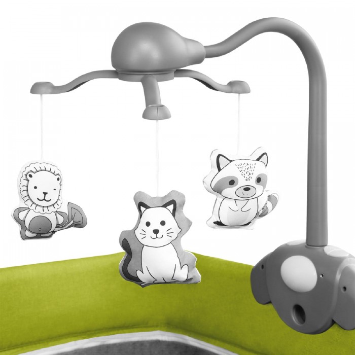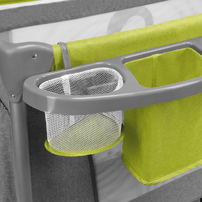 Так же большим плюсом является большое количество аксессуаров в комплекте. Вас ждет дуга с игрушками, которая развлечет ребенка пока он лежит в кроватке. Удобный органайзер для самых необходимых для ребенка вещей. Откидной пеленальный столик, который позволит сэкономить место, так как не придется покупать отдельную пеленальную поверхность. Он поможет удобно переодевать ребенка в первые месяцы после его рождения. С одной стороны кровати расположен большой карман, куда так же можно убрать часть часто используемых вещей. Когда ребенок подрастет, то кровать легко трансформировать в безопасный манеж для игр ребенка с удобным боковым лазом на молнии.
