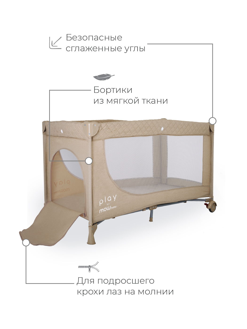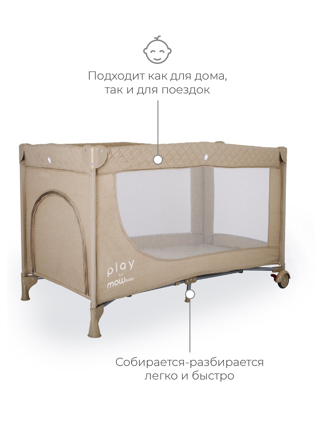 Манеж Mowbaby Play (Мувбеби плей) - это не просто место для игр, это место где ваш ребенок сможет находиться в безопасности пока вы занимаетесь делами или отдыхайте. Качественный, надежный и устойчивый манеж с большим игровым местом просто находка для любой мамы. Прочный алюминиевый каркас выдержит все игры ребенка. Ни каких острых углов и опасных элементов, все абсолютно безопасно дл крохи. Бортики манежа выполнены из сеточки специального плетения, обеспечивающие безопасность, хороший обзор и вентиляцию. Бортики выполнены из качественной, мягкой ткани и легко чиститься. Внутри манежа предусмотрен мягкий матрасик, который создаст дополнительный комфорт и тепло. Для того что ребенок сам смог залазить и вылазить из манежа предусмотрен лаз на молнии.