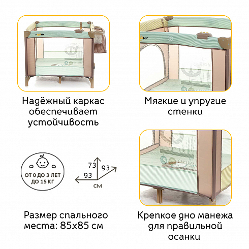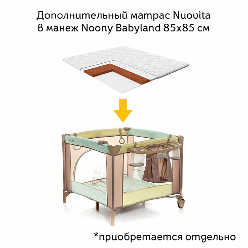 Манеж Noony Babyland (нуни бэбиленд) - квадратный манеж-кровать с большим спальным и игровым местом. Главной особенностью манежа является большой функционал, который, несомненно, оценят родители.
