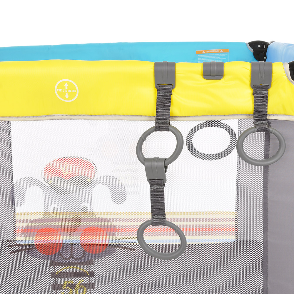 Комплектация: манеж, складной матрас, 4 съемных кольца, сумка для переноски.
