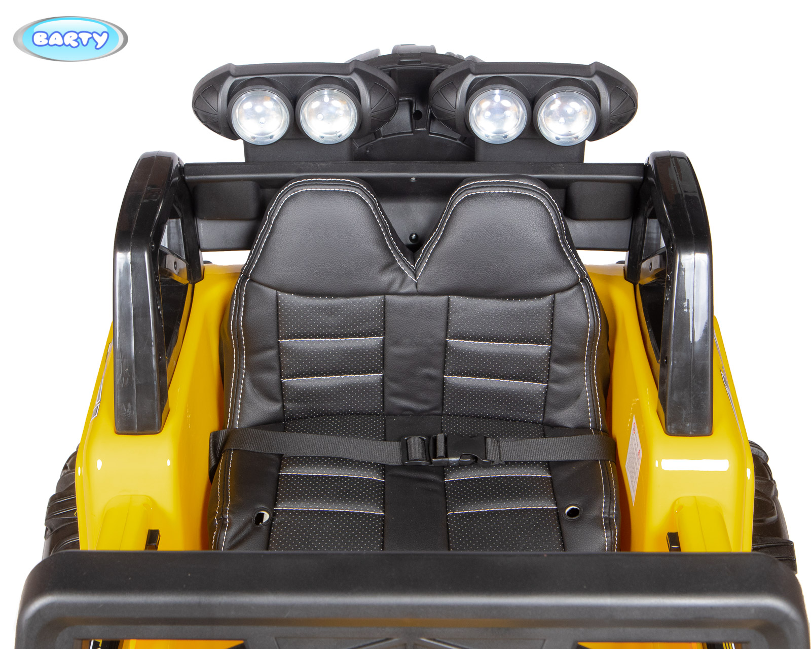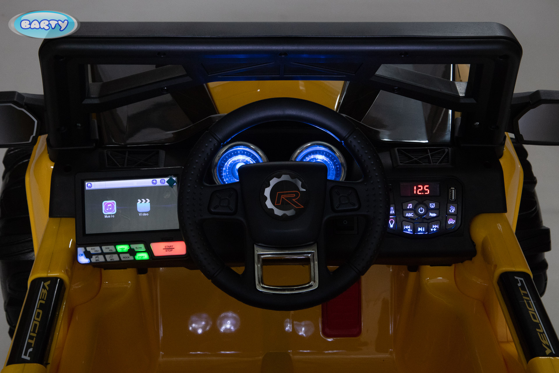 Электромобиль BARTY BAGGU T777MP 4х4 (барти багги) - мощный яркий внедорожник для ребенка от 3 лет. Машина двухместная, с мягкими кожаными сидениями и ремнями безопасности. Звуковые и световые эффекты придадут машине крутой вид, более интересные поездки и возможность ездить в темное время суток. Модель оснащена монитором MP4 для просмотра мультиков во время пробок.