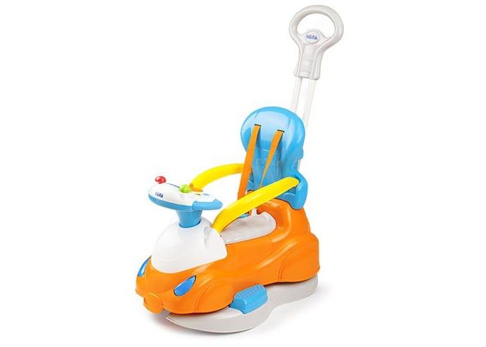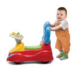 Удобная машинка каталка для ребенка от 9 месяцев. Ваш ребенок получит большое удовольствие от игры, нажимая на различные кнопочки и управляя машинкой. Все действия будут сопровождаться забавными звуками и обязательно понравятся ребенку. Машинку можно использовать для самых маленьких со специальными поручнями ограничителями, а в дальнейшем, ребенок сам сможет кататься по квартире, толкаясь ножками. Удобная ручка для родителей поможет катать ребенка, пока он сам не разберется с машинкой. Удобный ящик под сидением станет любимым местом ребенка для хранения самых важных и ценных игрушек. Машинка-каталка поможет развить ребенку координацию движений и подарит много положительных эмоций.