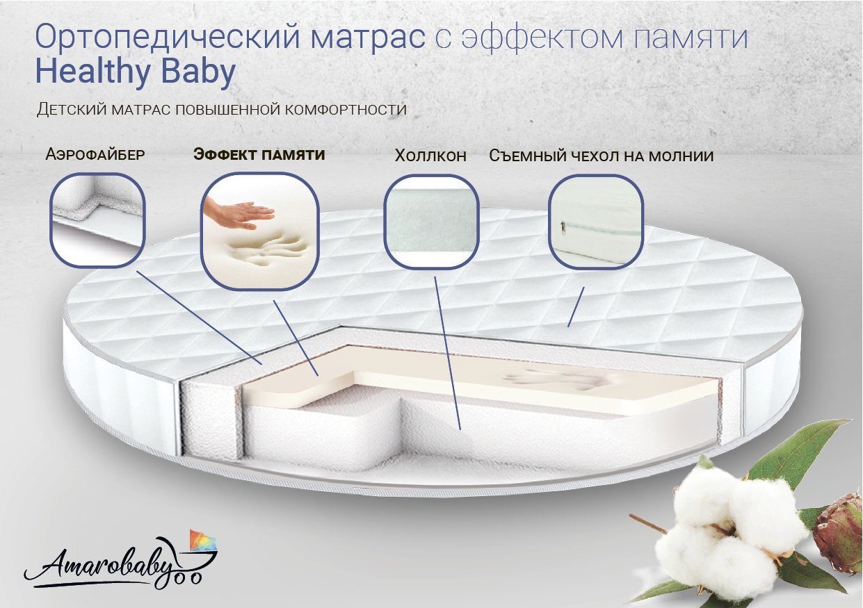 Матрас AmaroBaby с эффектом памяти Healthy Baby (круглый) 75х75 см (Амаробеби)