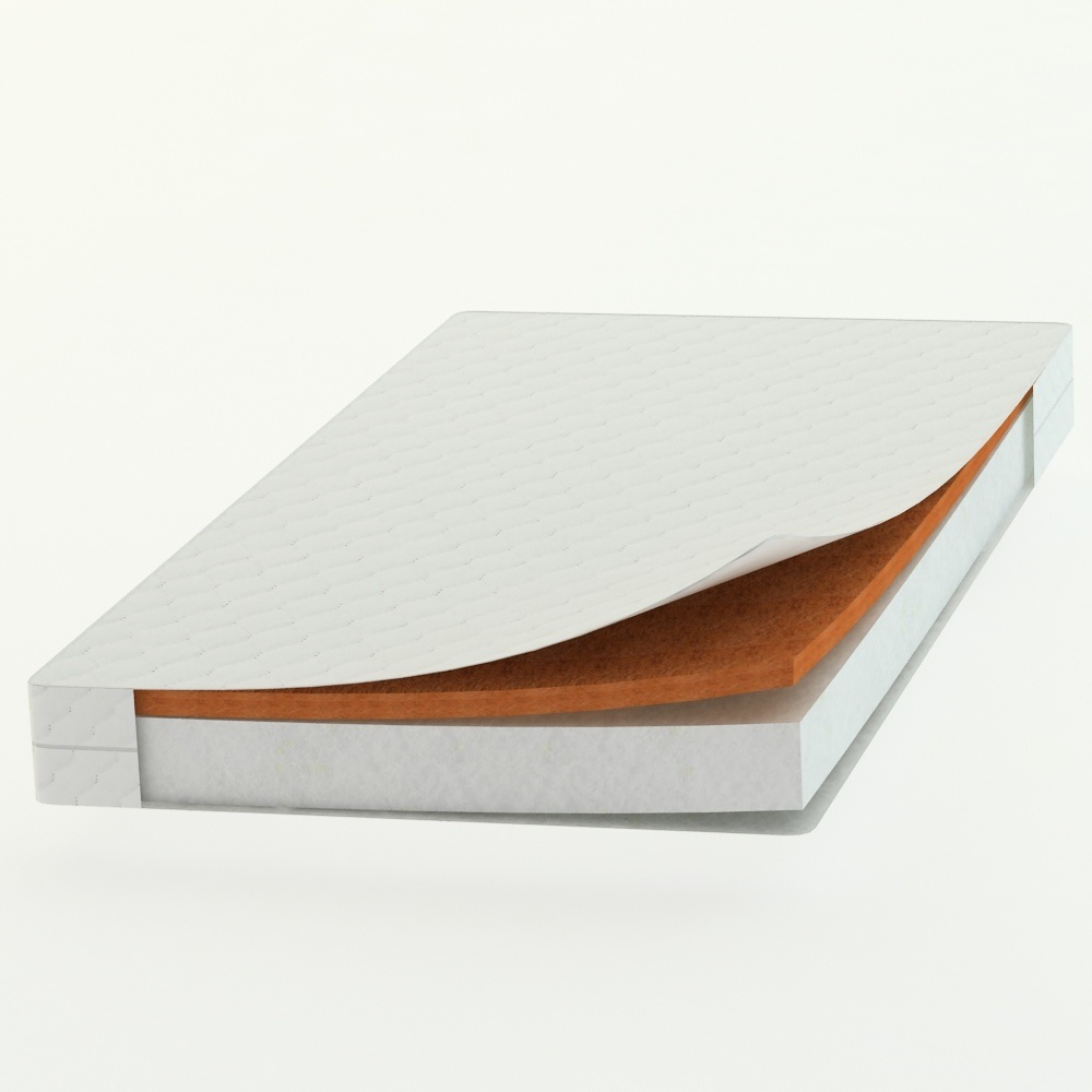 Беспружинный матрас позволяет регулировать степень жесткости, так как с одной стороны изготовлен из кокоса, а с другой из холкона.