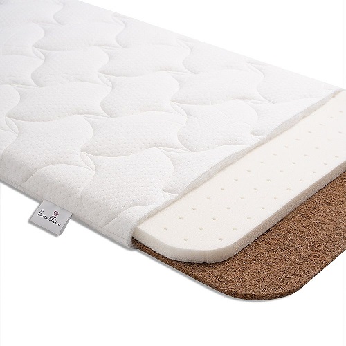 Жесткий и прочный наполнитель из переплетенных волокон кокосового ореха, скрепленных латексом – вспененным соком каучукового дерева. На 100% натуральный материал, экологически чистый и долговечный, один из лучших, которые может предложить нам природа. Обладает исключительными антиаллергическими и антибактериальными свойствами: не впитывает запахи и влагу, не гниет, отлично пропускает воздух и регулирует температуру, к тому же не деформируется. А самое главное – идеально поддерживает позвоночник маленького ребенка во время сна. По мнению ортопедов и педиатров, идеальный наполнитель матрасов для новорожденных.