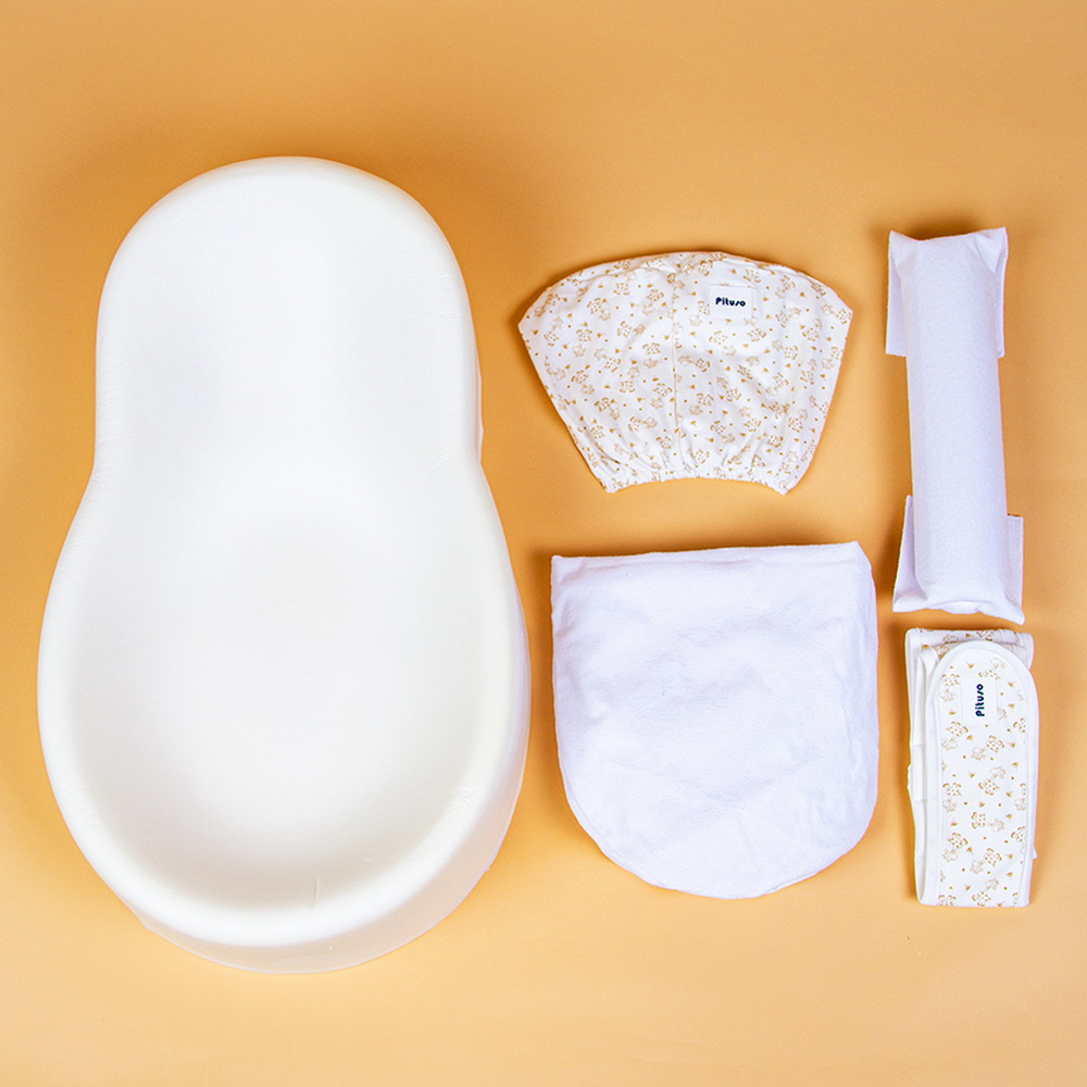 Комплектация: Основание колыбели-кокона из вязкого-эластичного пенополиуретана (пена с эффектом памяти); Съемный трикотажный чехол на резинке (100 % хлопок); Непромокаемый чехол на молнии; Валик под ножки; Пояс с липучками; Сумка-переноска.