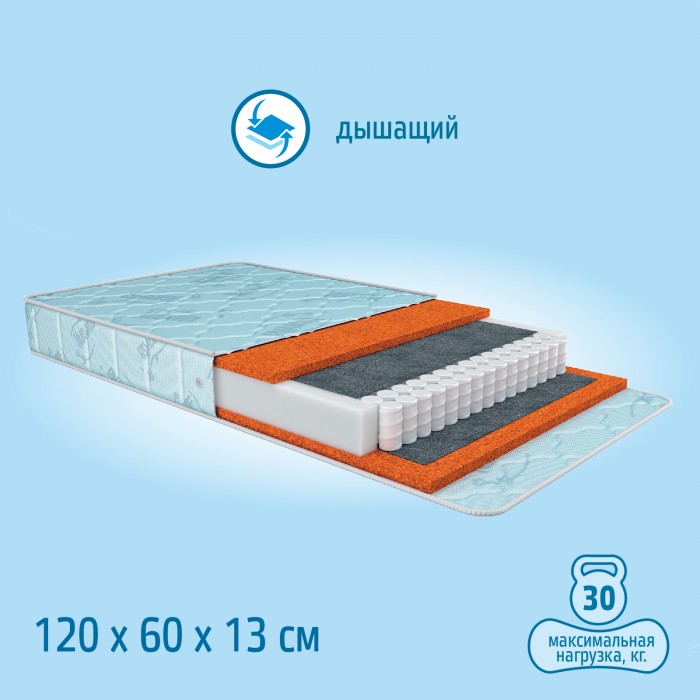 • Независиммый пружинный блок 12 см + кокос 1 см + кокос 1 см (с каждой стороны)