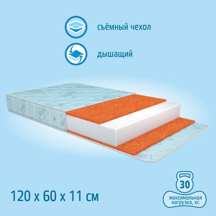 - Максимальная нагрузка на матрас 30 кг.
