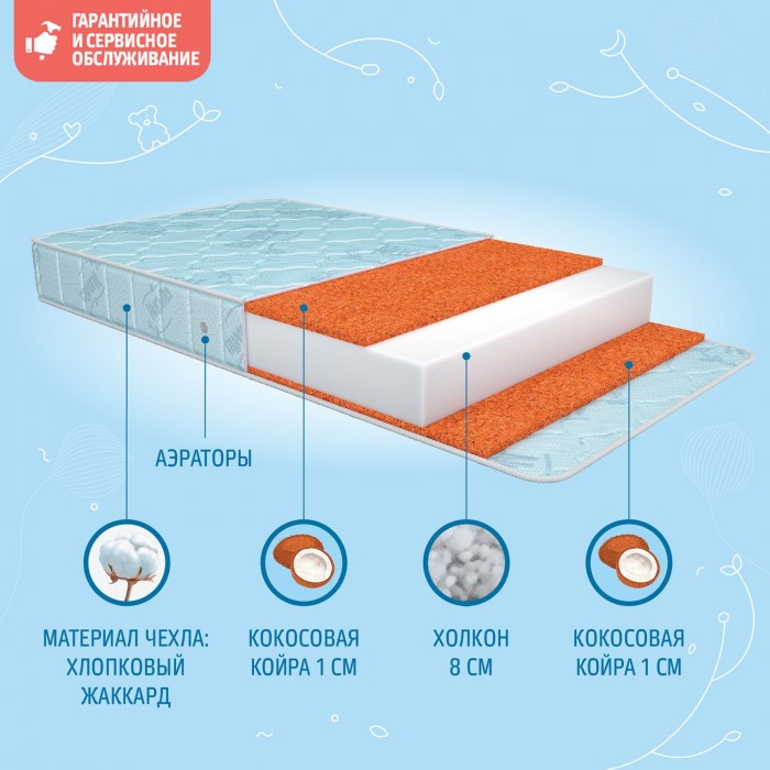 - Чехол матраса съёмный, выполнен из хлопкового жаккарда.