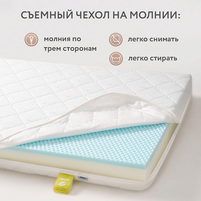 - Удобство ухода. Съемный чехол на молнии по трем сторонам упрощает стирку и поддержание чистоты матраса.