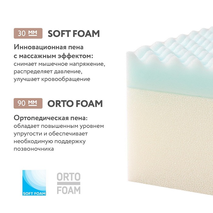 SOFT FOAM – (25 мм) Инновационная пена с массажным эффектом, снимает мышечное напряжение, распределяет давление и улучшает кровообращение.