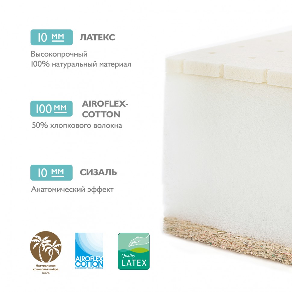 Универсальный двусторонний беспружинный матрас премиум-класса. В модели используется сочетание классических натуральных материалов: анатомического латекса и латексированной кокосовой койры.