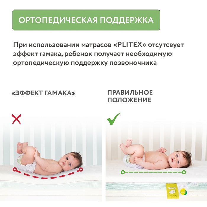 Одна из главных особенностей этой серии Plitex: это двусторонние матрасы, причем одна из сторон у них специально разработана для профилактики нарушений осанки у ребенка.