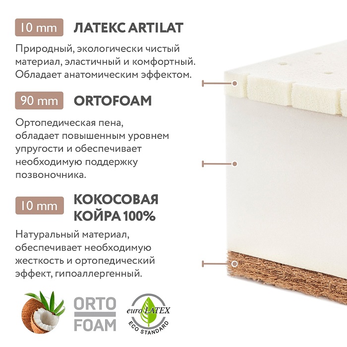Матрас PLITEX Orto Foam (160х80х12см) - ортопедический беспружинный матрас на основе материалов повышенной упругости: ортопедической пены Ortofoam, натурального латекса и кокосовой койры. Модель разработана с участием детских врачей-ортопедов, адаптирована под ребенка от 3 до 7-10 лет. Подходит для спального места 160х80 см.