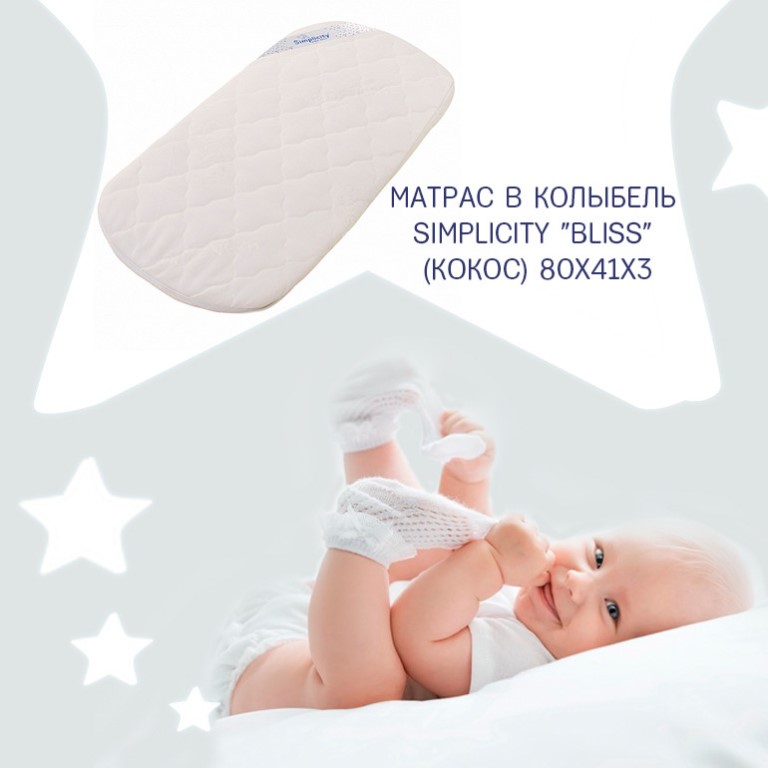 Матрас в колыбель Simplicity Bliss (симплисити блисс) - дополительный кокосовый матрас в колыбельку для новорожденного. Матрасик вентилируемый. Чехол на молнии для удобной стирки.