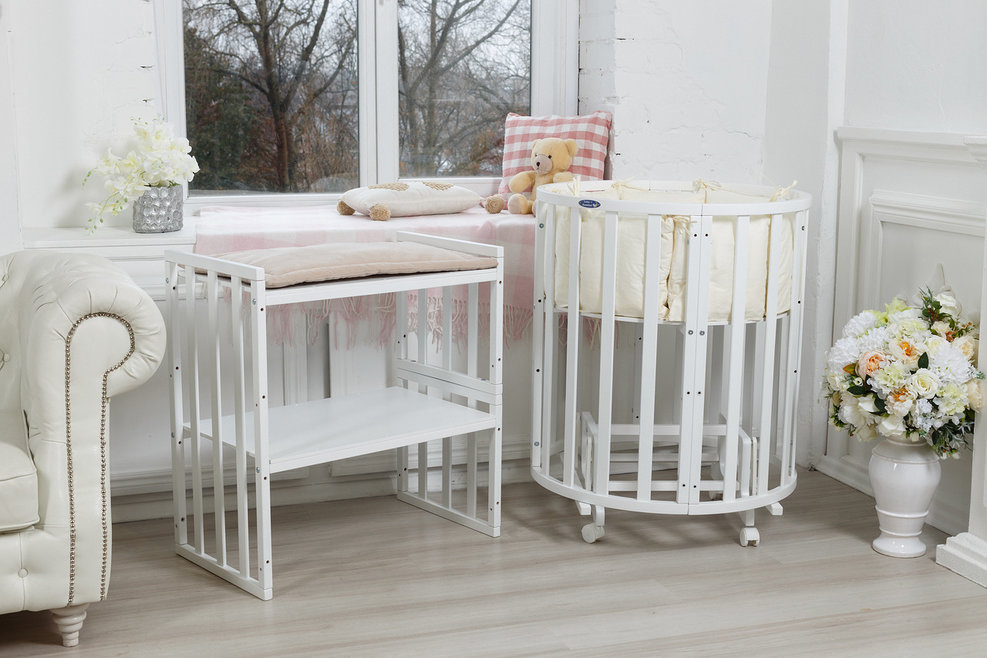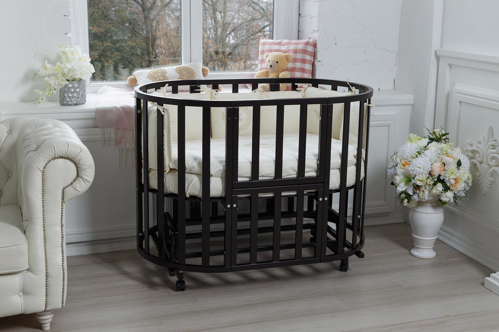 - Универсальный. Подходит для круглой и овальной кроватки.