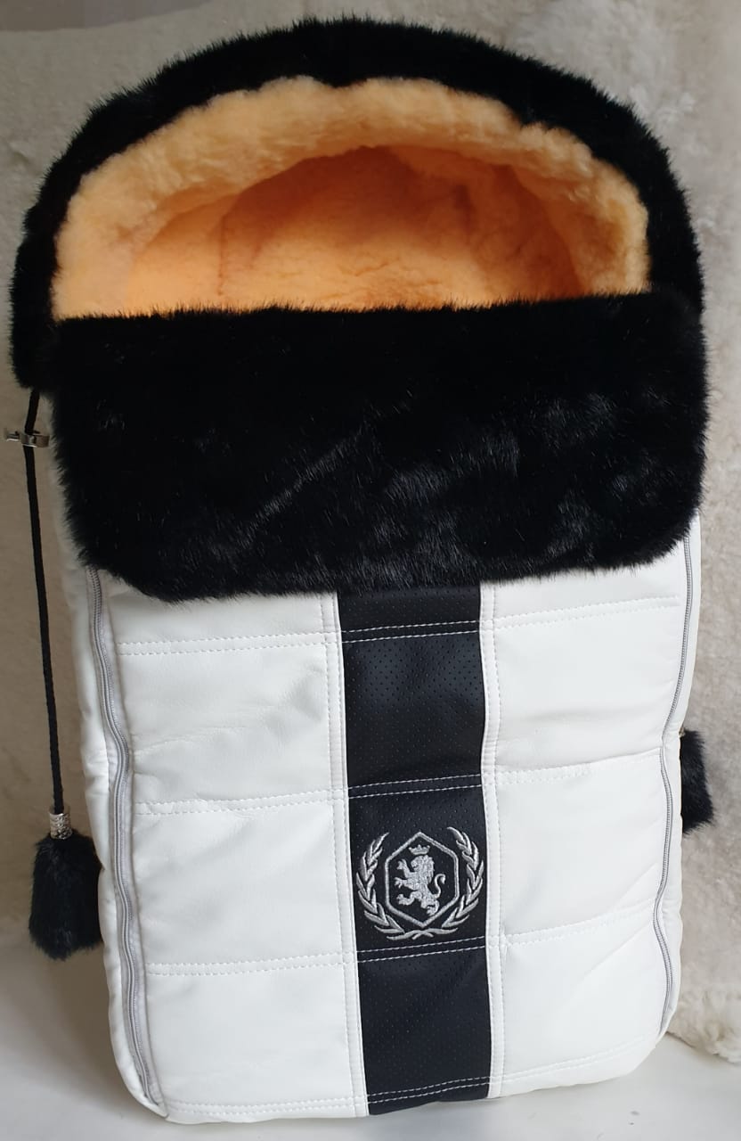 Меховой конверт в коляску Ecoline (Эколайн) - теплый и мягкий конверт для детей до года. Идеально подойдет для первой зимы вашего крохи. Конверт в зависимости от цвета снаружи выполнен из эко кожи или из непромокаемой плащевки. Внутри конверта 50% гипоаллергенный овечий мех и 50% полиэстер. С внешней стороны конверт украшен королевской вышивкой. Для удобного доступа к ребенку предусмотрены молнии по бокам. Удобный отворот для защиты крохи от ветра. Высокое качество и внимание к деталям.