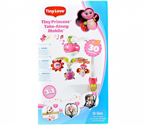 Мобиль Tiny Love Моя принцесса (Тини лав) - универсальный мобиль, который может использоваться на кроватке, автокресле или коляске. Модель имеет удобное крепление, которое не портит поверхность и может быть прикреплено к любому бортику. Сам мобиль может сниматься с основания и крепиться с помощью специального ремешка на другие поверхности. Нежно-розовый, с улыбающимися игрушками и очаровательной подборкой мотивов - это идеальный подарок для маленькой принцессы. В дальнейшем музыкальный блок может сниматься и использоваться как отдельная игрушка.