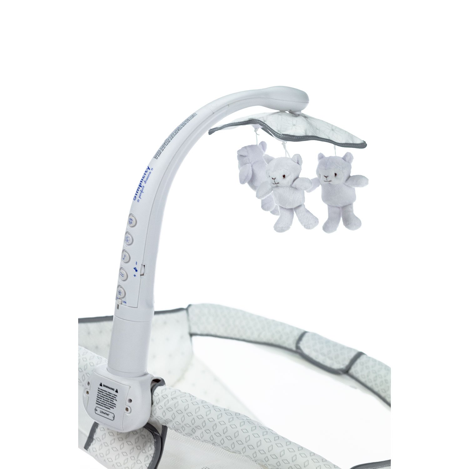 - Съемный музыкальный мобиль со световыми и звуковыми эффектами и 3-мя подвесными игрушками помогут развлечь малыша.