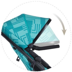 Чаша прогулочного блока сделана по типу гамак и имеет 3 наклона спинки, в тч полностью горизонтальный. У капюшона есть дополнительная секция на молнии, чтобы он стал еще больше.